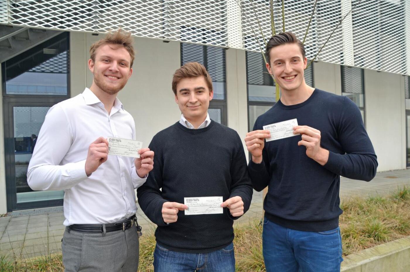 De tre legatmodtagere fra venstre Rasmus Engelbrecht Sørensen, Mikael Borre Jansson og Victor Backer Gonzalez Salido. Foto: Learnmark Horsens.