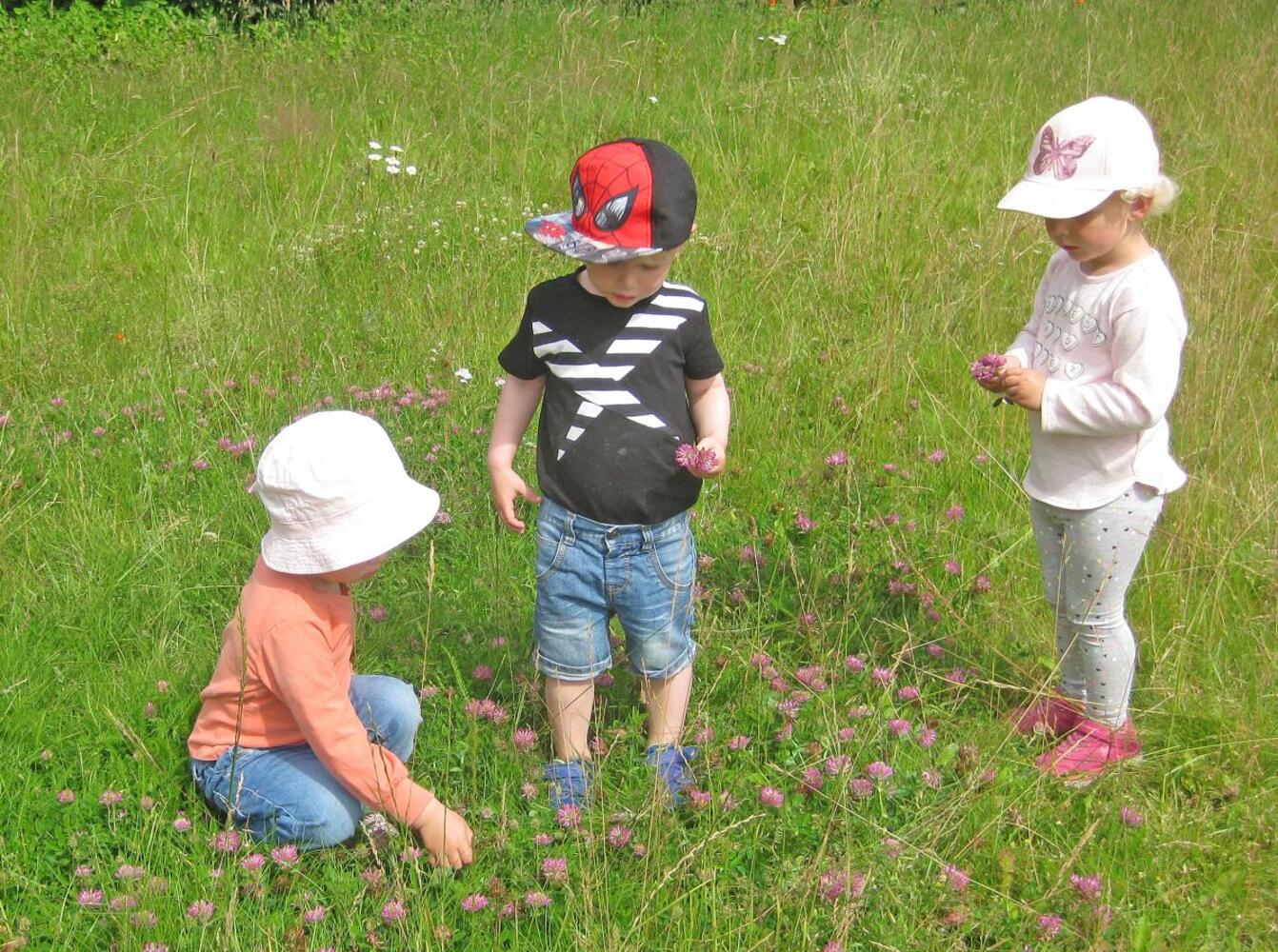 - Børnene kommer som udgangspunkt ud hver dag og hver uge er vi på en lille udflugt i nærmiljøet, fx skovområder, og krattet langs stier. Vi har fokus på årstidernes skiften, dyr, træer og planter, samt fra ”jord til bord”.