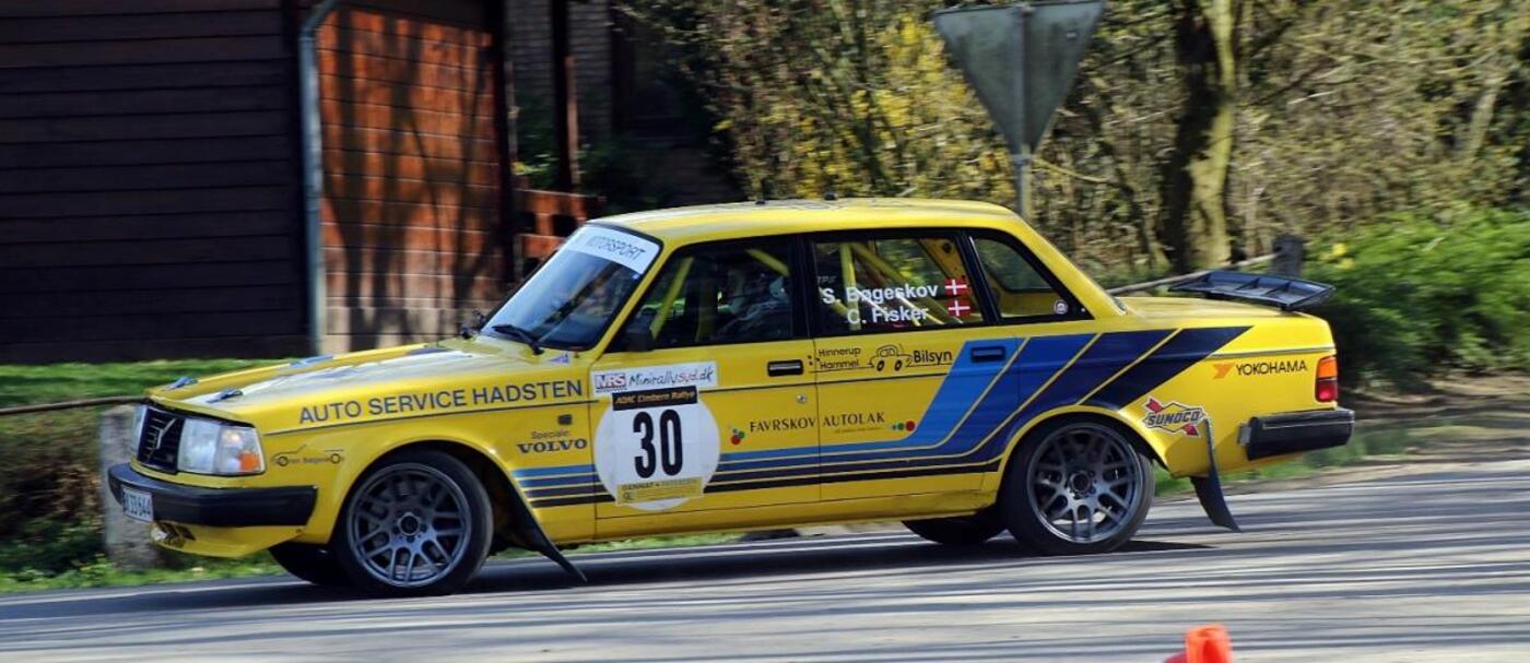 Søren Bøgeskov fra Hadsten og den gule Volvo 240 Turbo er atter klar efter han og Christian Fisker fra Østbirk desværre udgik af det forrige rally DM med motorskade. Men bilen er atter fit for fight og klarede sidste weekends funktionstest på Nysumbanen uden problemer.