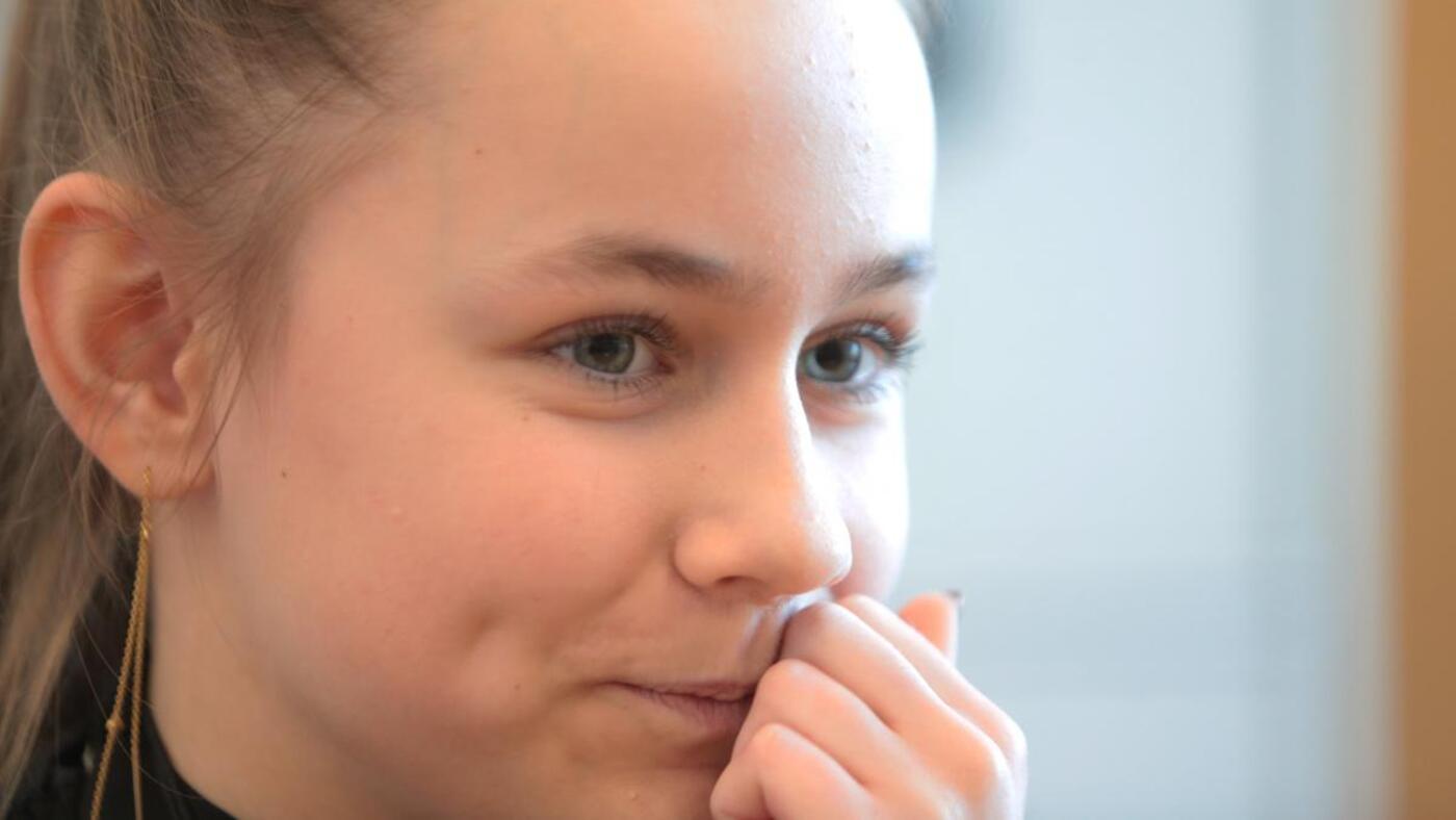 Sådan reagerede 14-årige Kirstine Lyskjær Østergaard fra 8.c. på Østerhåbskolen i Horsens, da hun blev opfordret til at stille op til posten som ny borgmester for Horsens Børnebyråd i 2019.