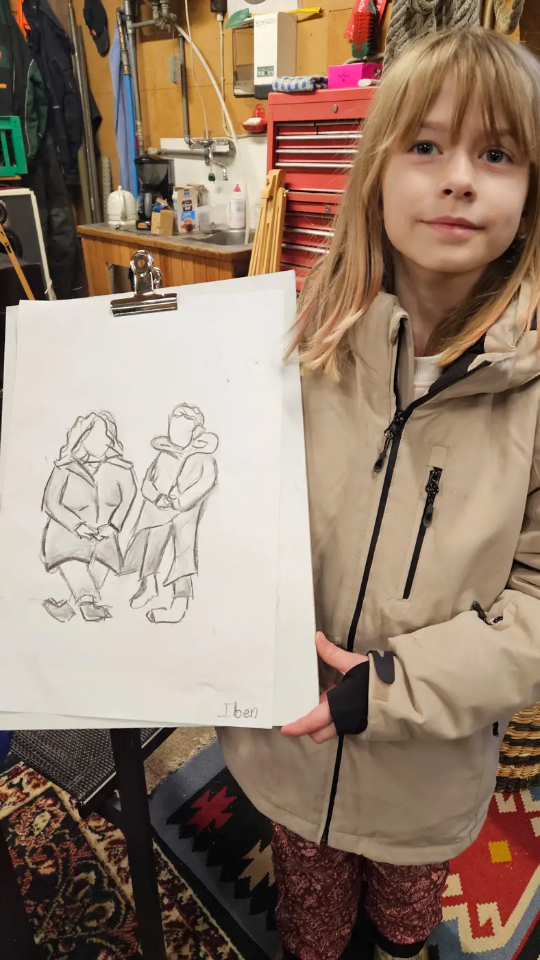 Herefter var der en kort pause, inden det næste motiv blev afsløret. Det var Else-Marie og Hanne selv, der sad model, og i modsætning til hvad man ofte ser ved croquistegning, var modellerne i ført varmt tøj, hvilket formentlig ikke gjorde opgaven lettere. Der kom dog mange fine gengivelser af modellerne, med vægt på forskellige detaljer.