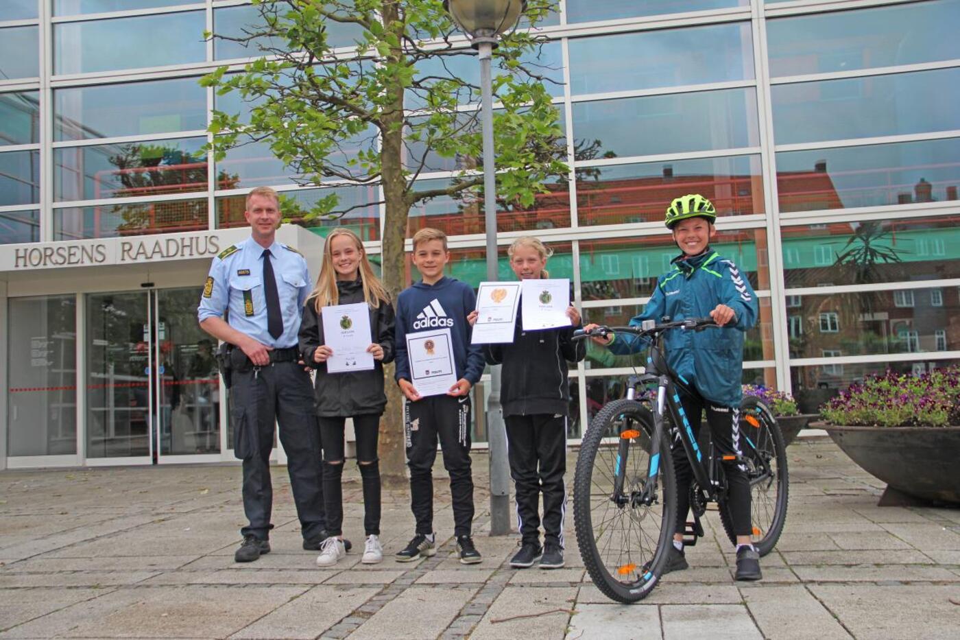 Efter kåringen af årets 1., 2. og 3. plads var der lodtrækning blandt eleverne om flotte præmier, sponsoreret af Rådet for Sikker Trafik og Fri BikeShop, Smedegade i Horsens. Der var blandt andet cykelhjelme og ’medvind’ i form af cykelpumper og ikke mindst hovedpræmien, som var en cykel. Denne vandt en glad Mark Bonnemann fra Hulvejskolen, som straks sprang på cyklen, klar til at suse afsted.
