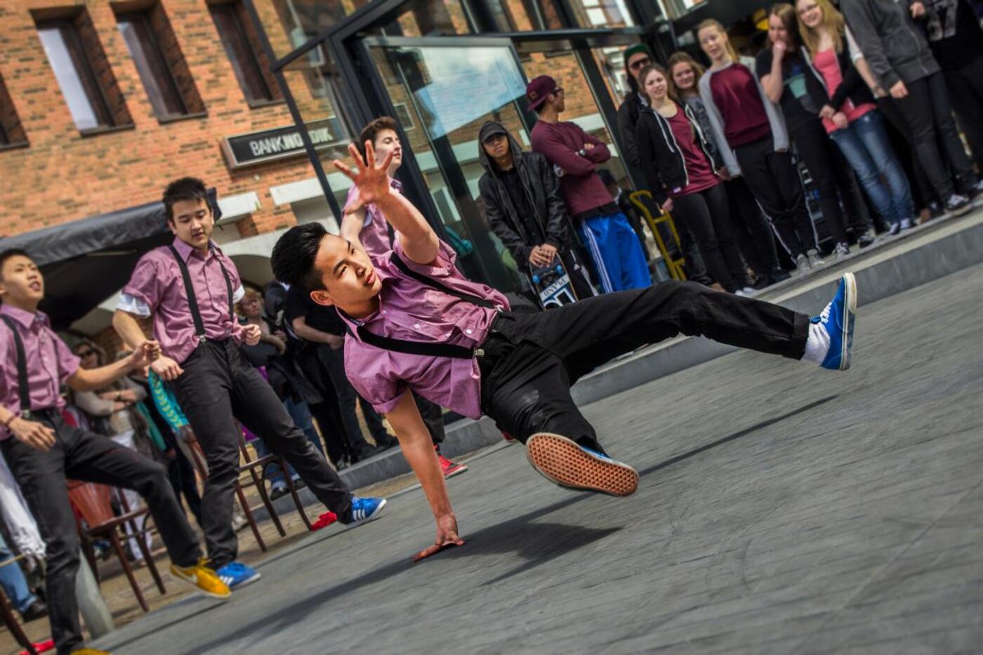 I Horsens optræder flere hundrede dansere fra forskellige foreninger og skoler med alt fra salsa til ballet til diskodans. Danserne fordeler sig på tre scener henholdsvis ved Kuben, foran det gamle rådhus og i Bytorv Horsens. Hvis du bevæger dig ned mod Torvet kan du også være heldig at opleve Ungdomsskolen, som i løbet af eftermiddagen bryder ud i danse-happenings i denne del af midtbyen.