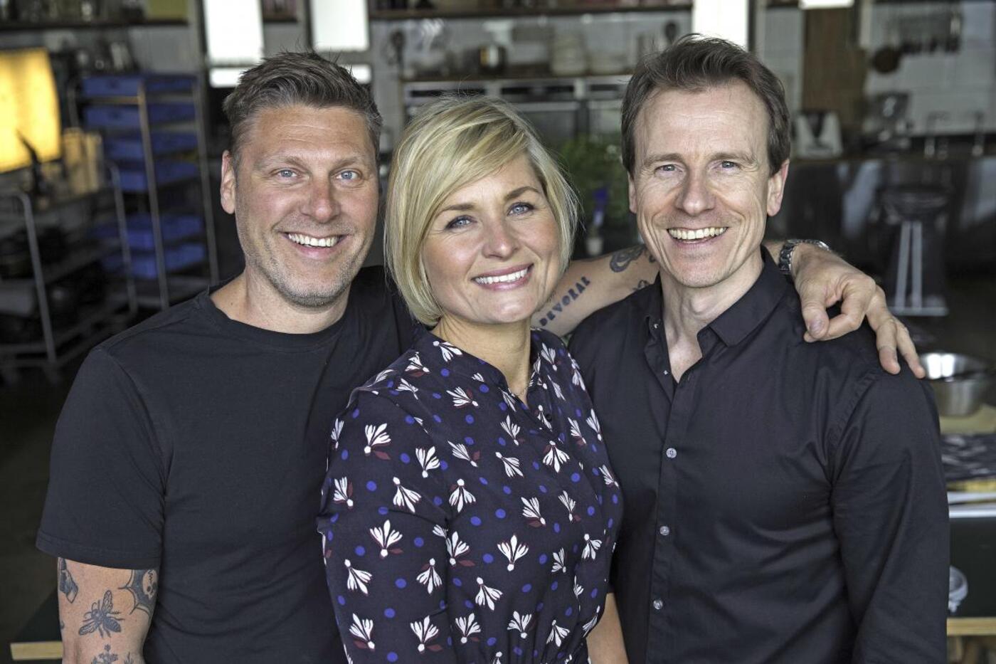 Timm Vladimir er fortsat vært på Den store bagedyst. Katrine Foged Thomsen og Markus Grigo er de to nye dommere, som skal bedømme den kommende sæsons dygtige amatørbagere. Foto: Bjarne Bergius Hermansen.