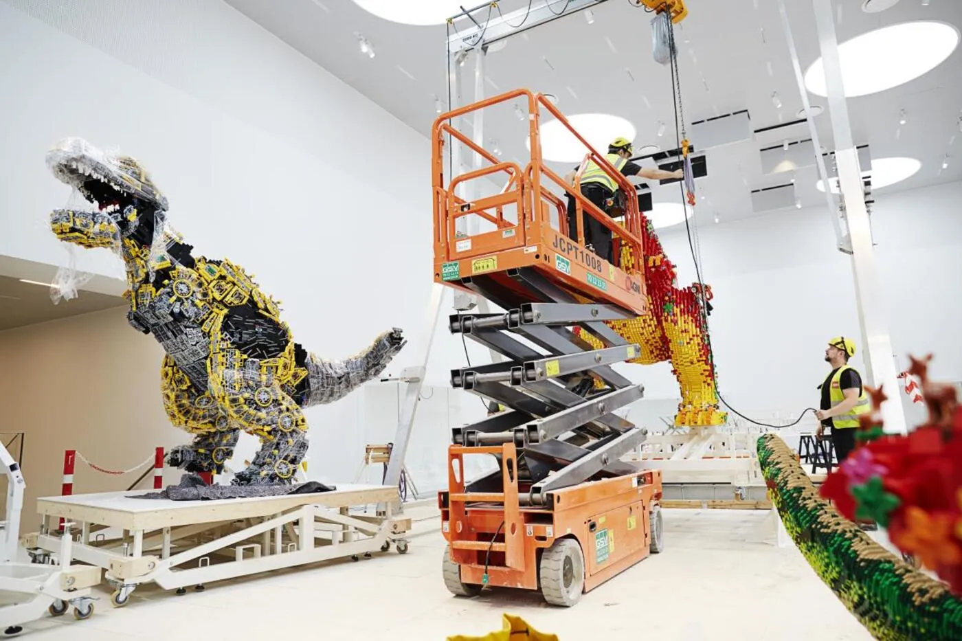 Senior designer i Lego House, Stuart Harris, kunne for nylig afsløre, at de tre podier i Masterpiece galleriet vil blive besat af de tre gigantiske dinosaurer - skabt af Legos egne fans.