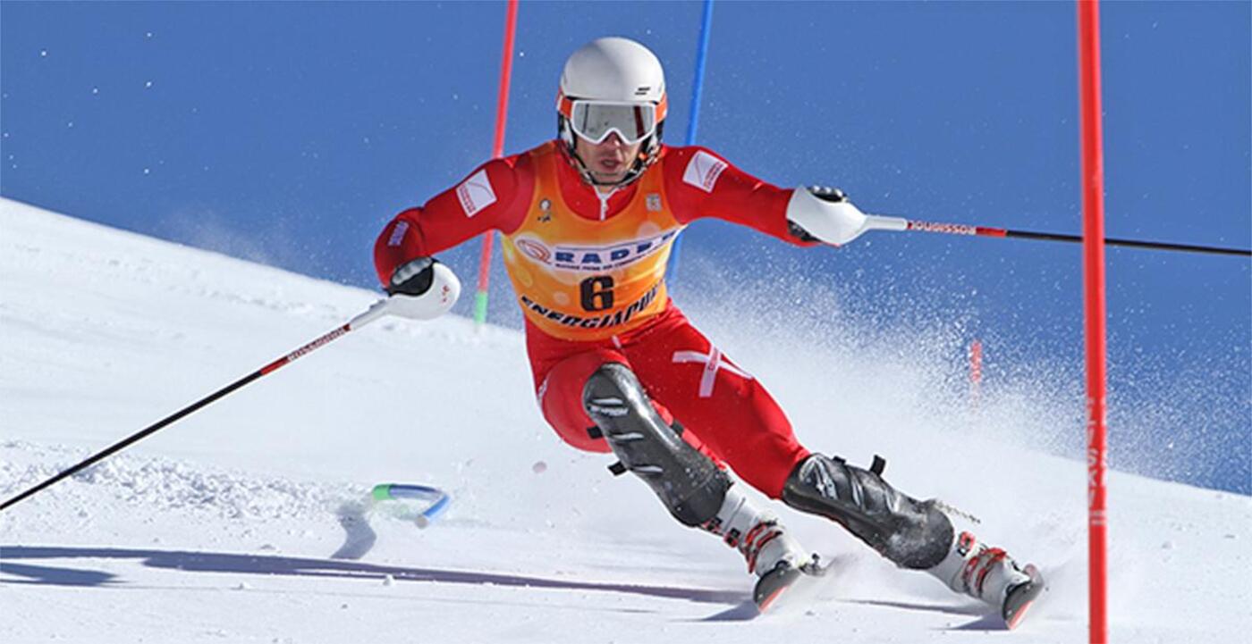 Casper Dyrbye er en af Danmarks to alpine skiløbere. Her er han i fuld fart på pisten. Foto: Lars Møller.