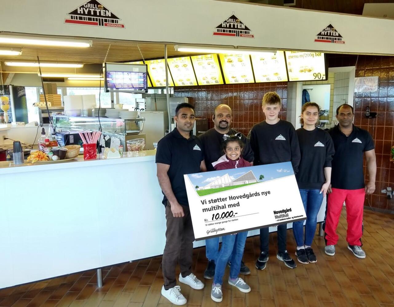 - Jeg ønsker tillykke med den nye hal og støtter med et bidrag på 10.000 kr. Alle borgere i Hovedgård får glæde af den. Jeg og min familie bor i Viby J, men vi ønsker at støtte det gode arbejde, siger Sugi, indehaver af Grillhytten Hovedgård.