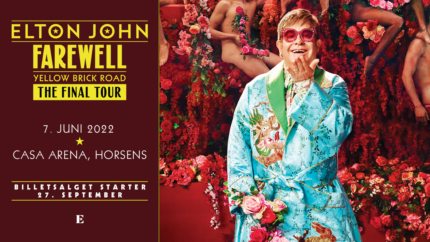 Den 7. juni 2022 kan du opleve Elton John med hans 'Farewell Yellow Brick Road the final tour' på CASA Arena i Horsens! Det officielle billetsalg begynder 27. september 2021 i Danmark.