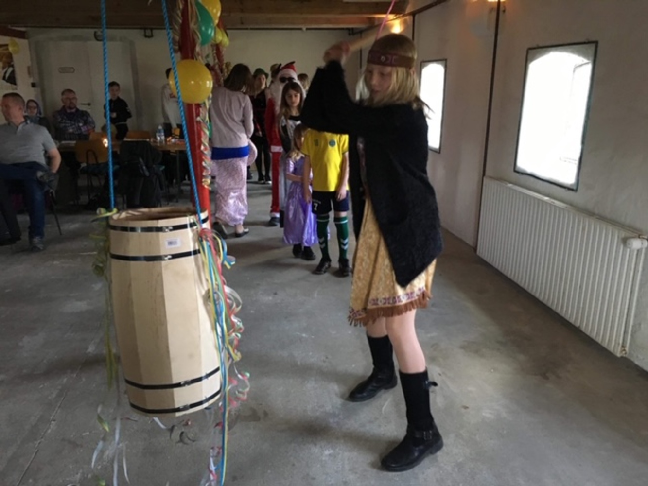 Ca. 35 børn og voksne var mødt op til tøndeslagning og fastelavnsboller.