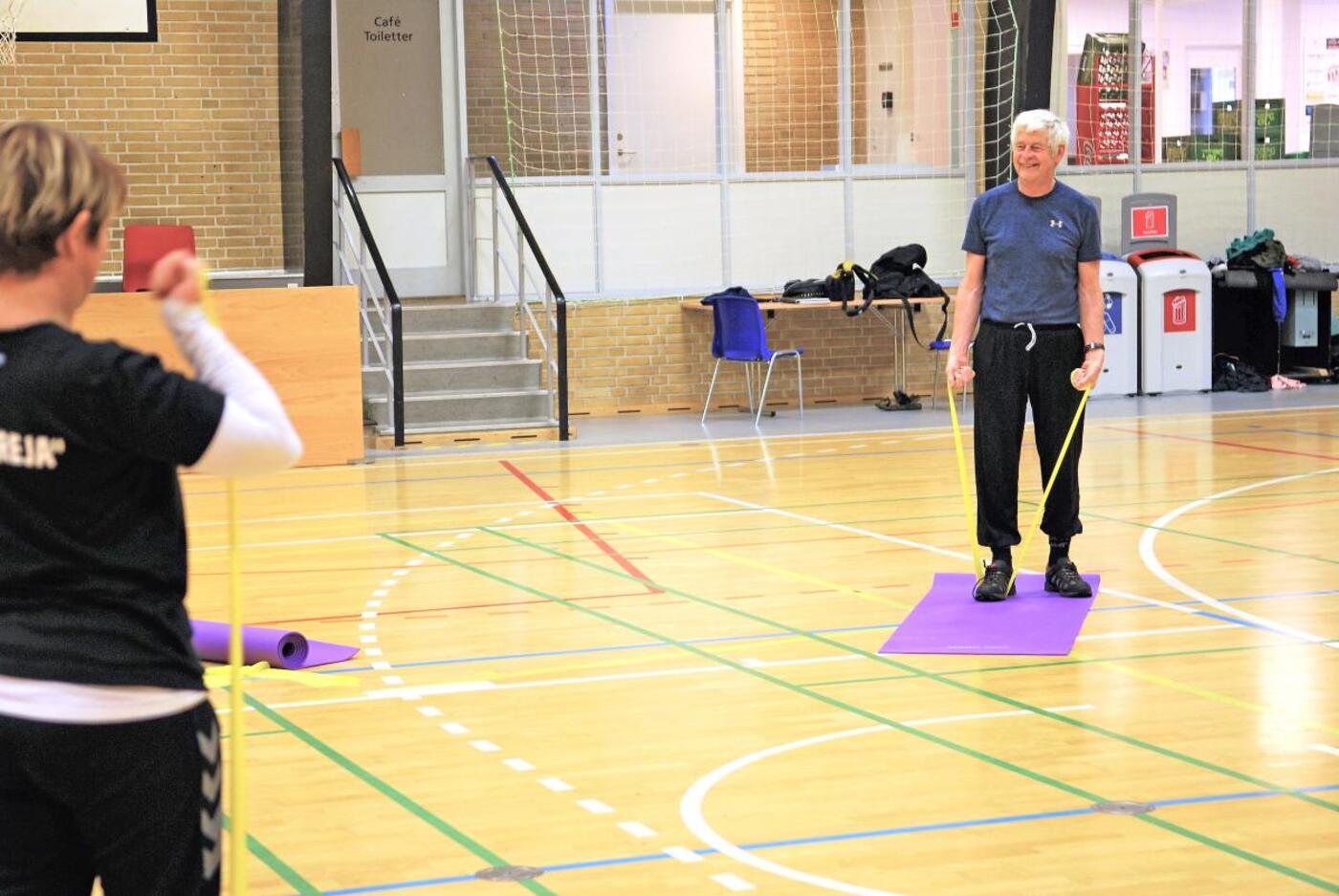 De svinger med armene og bøjer i knæene det bedste de har lært, når de frivillige fra Horsens Freja gelejder de aktive seniorer igennem den ugentlige træning. En træning, som er lige så varieret som de deltagere, der møder op. Foruden opvarmning og lettere styrketræning, har der flere gange været både badminton og volley på programmet. Her kan alle være med, og kampen nydes hver gang med grin og opbakning fra de andre deltagere.