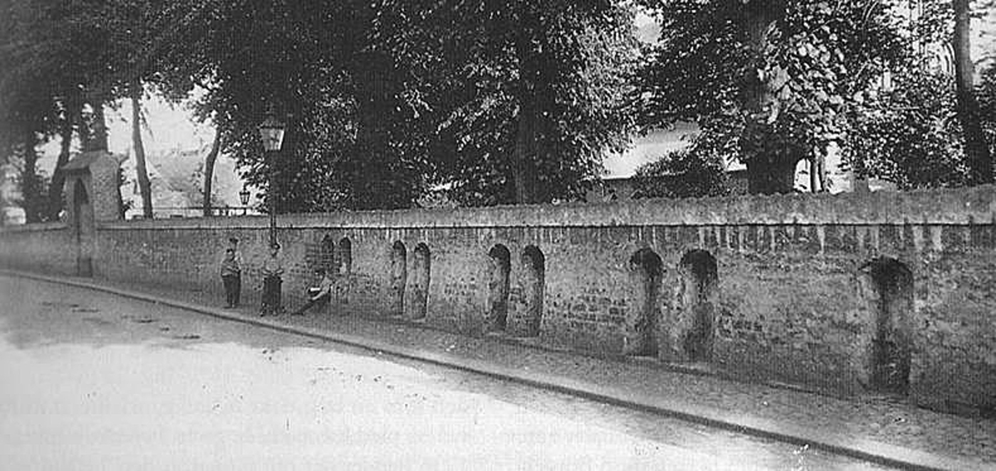 Klosterkirkegårdsmuren er nu nedrevet. Foto fra omkring år 1900. Horsens Museum.