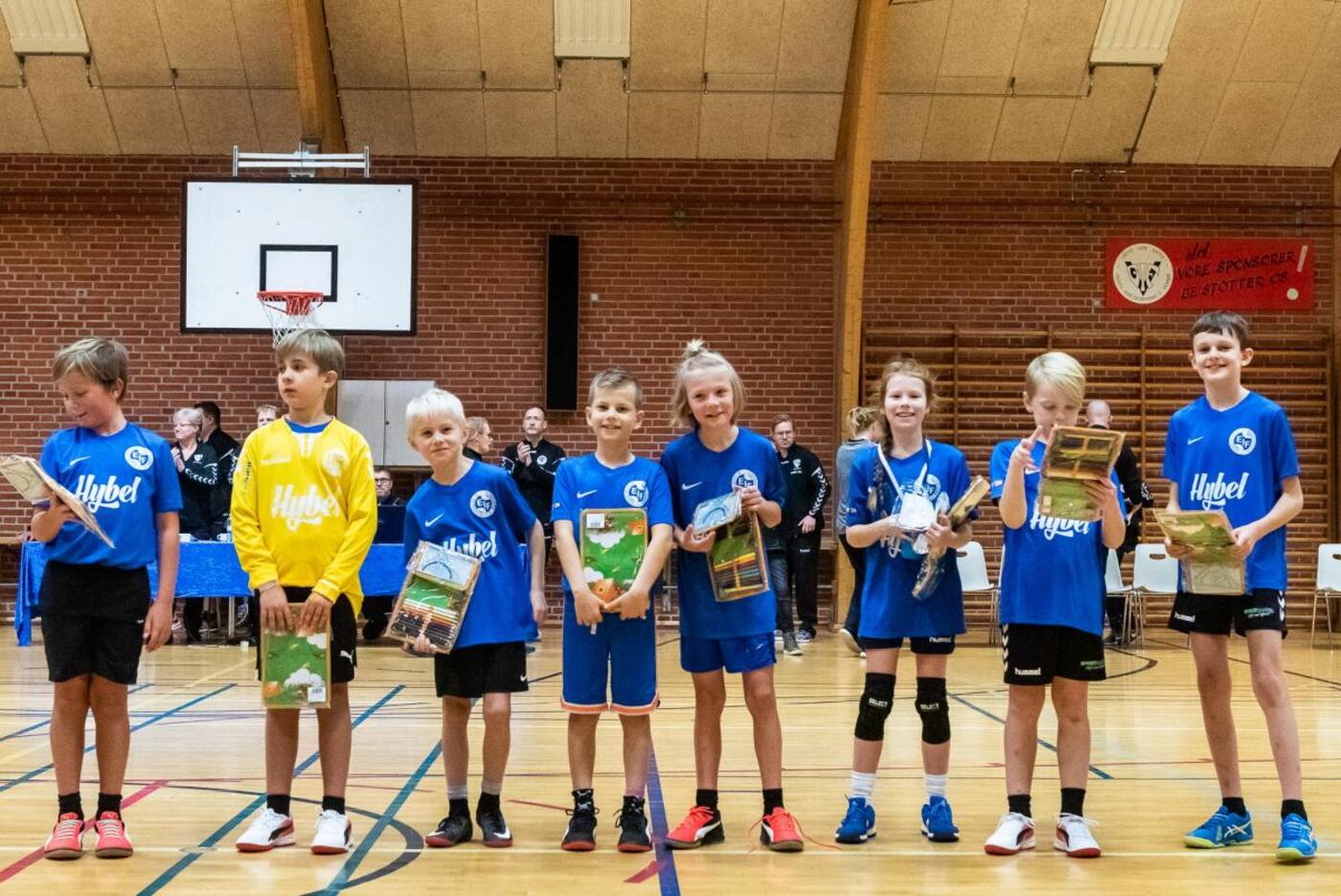 Der blev spillet koncentreret og vi så mange gode detaljer, samt flotte opspil og lækre scoringer. Der er tydeligvis masser af talent på banen og måske fik vi et glimt af fremtidens landsholdsspillere udfolde sig på banen i Gedved Hallen? Men lige nu er det hele mest sjov og leg, men det er stadig fedt at opdage ens navn blive råbt op over højtalerne og få at vide man er kampens spiller. Den unge Gedved målmand var klart overrasket da han hørte sit navn og udbrød højt: Det er jo mig!