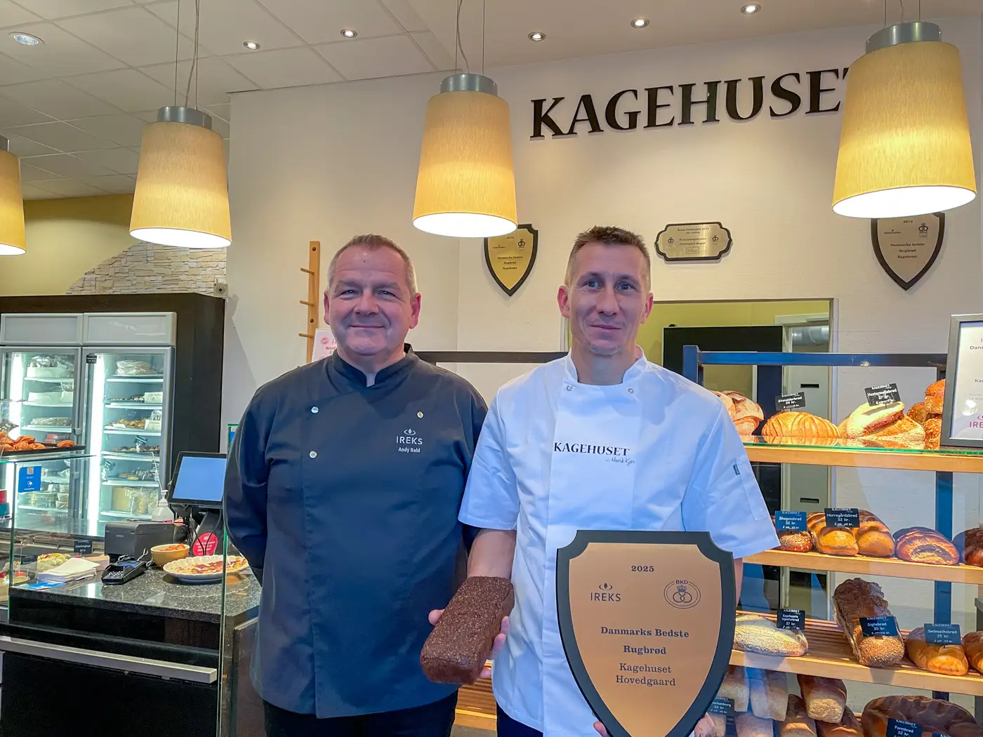 Hos Kagehuset i Hovedgård er der altid gang i ovnene – og i snakken. Og her i november var der ekstra meget at smile af. Bagermester Henrik Kjær har nemlig fået et præmieskilt, der nu hænger synligt på væggen i butikken. En tredjeplads i Danmarks Bedste Rugbrød er ikke bare flot – det er noget, der luner.