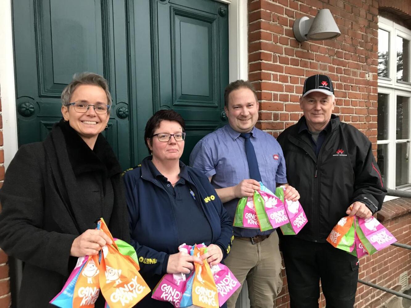 På billedet ses sognepræst Lone Buhl, Heidi Mainz, Netto, Kenneth Jespersen, SuperBrugsen og som repræsentant for Borgerforeningen Tage Skårup Nymark.