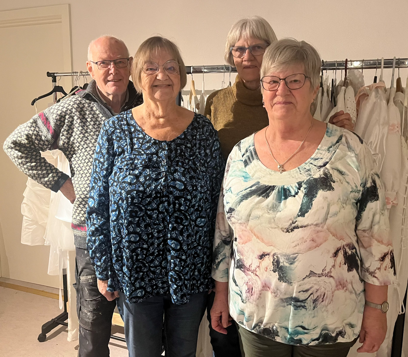 Ved hans side står Solveig, Alice og Tonny. I mere end ti år har de – sammen med andre frivillige – ordnet konfirmandtøj og sikret, at initiativet kan fortsætte. Det er det lange, seje træk. Det, der ikke gør væsen af sig, men som får tingene til at fungere, uge efter uge og år efter år.