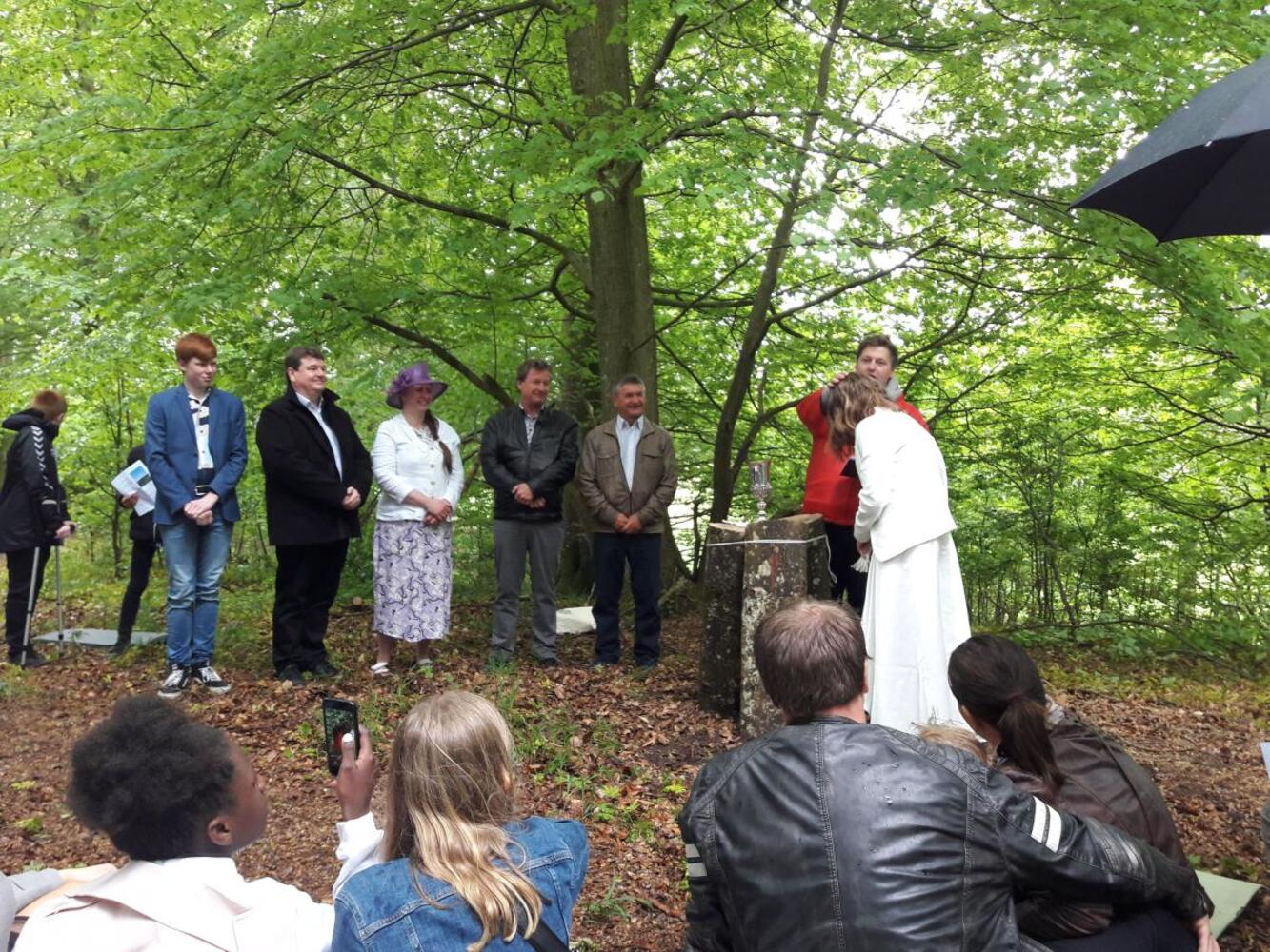 Endnu en Kristi Himmelfart foregik helt ude i skoven, og sikke da en dejlig oplevelse! Trods regnen lykkedes det at skabe et saligt rum, hvor der både var plads til at blive rørt over den hellige dåb og til at smile og synge af karsken bælg: ”Det dufter lysegrønt af græs!”