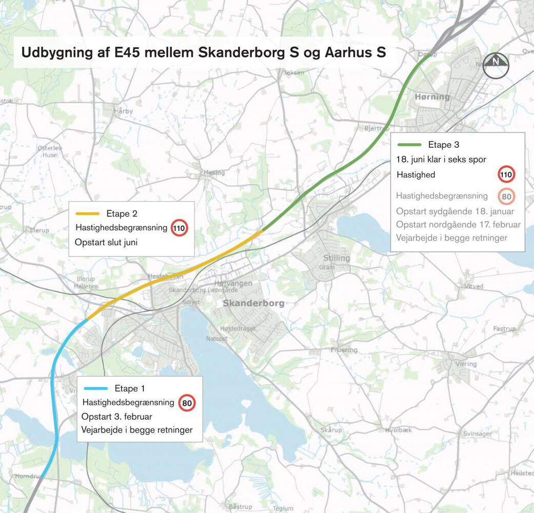 Seks spor klar mod nord på Østjyske Motorvej