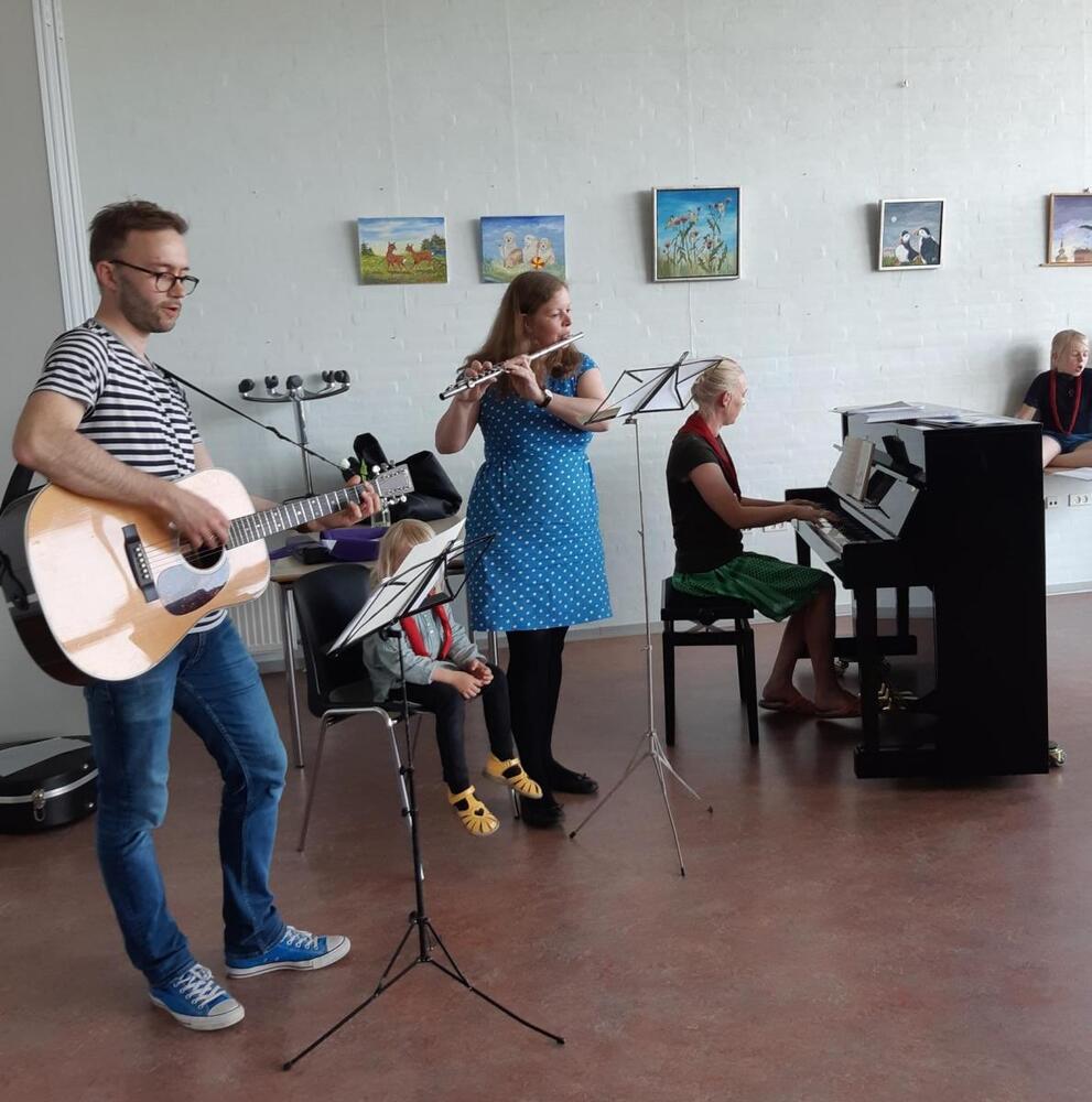 Musikken var der bestemt ikke sparet på, da tremandsorkestret bestående af Christina Bernhard Rasmussen på klaver, Lene Holt Hansen på fløjte og Kristian Holt Hansen på guitar slog tonen an. Alle sangene fra den flotte sangfolder, som var blevet fremstillet til lejligheden, fik musisk akkompagnement, og således blev den festlige stemning cementeret.