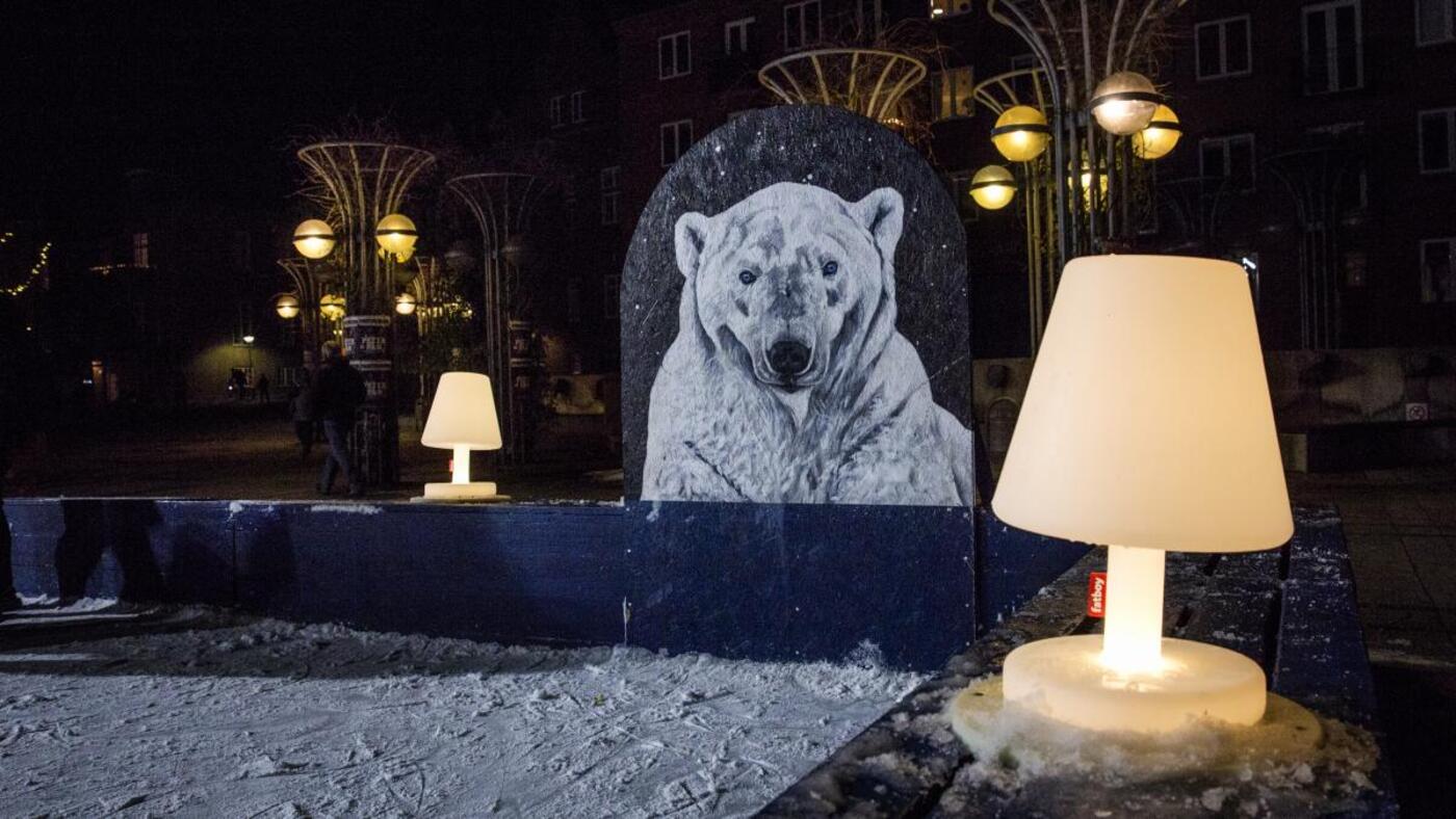 Den lokale kunstner Jamie Linley har også udsmykket selve skøjtebanen og skøjteudlejningen med de fine vinterdyr, som igen i år har taget ophold i Horsens i ly for den iskolde polarvinter mod nord