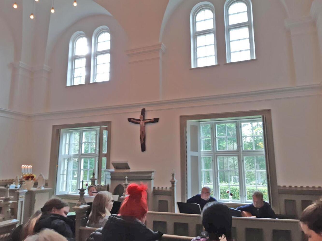 Efter arrangementet i klosterets kirkesal blev der serveret kaffe og kage i klostrets fællesstue. Her fik alle lov til at røre sangmusklerne, da organisten fra Hansted kirke, Astrid Lindvig, satte sig til klaveret og akkompagnerede fællessangen: ”Nu falmer skoven trindt om land…”