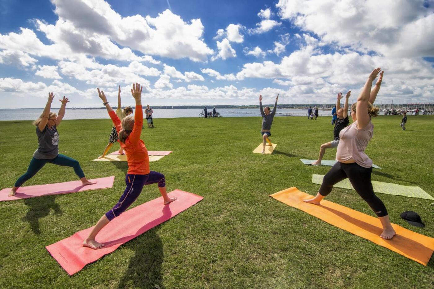 Er humøret mere til yogaleg og udfordring af balanceevne og motorik, så byder Langelinie også på en hel stribe yoga-arrangementer under åben himmel og med udsigt til fjorden.