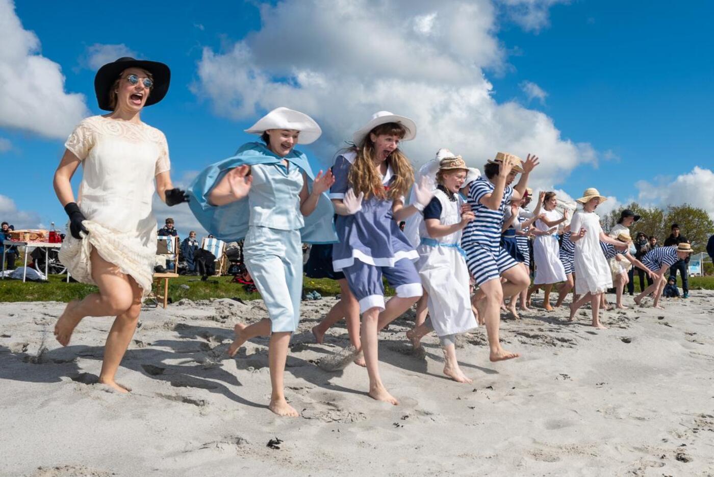 Heldigvis var der nok at se og opleve, og det hele begyndte med Komediehusets Badeforening anno 1929, hvor en snes af de unge kom ind på pladsen i flot optog med musikalske toner anno 1929. Efter kyndig vejledning fra Badeforenings chefindpisker, blev der varmet grundigt op inden de vinterblege herre- og dameben skulle mærke Horsens Fjords alt for lave badevandstemperaturer.