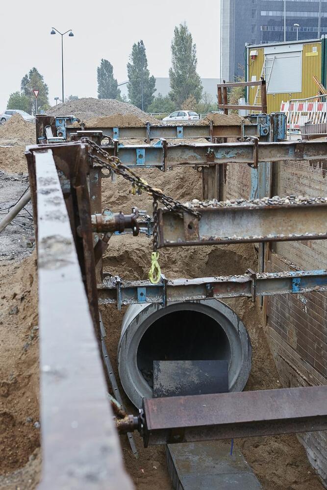 Ledningen skal ligge ca. fem meter under den nye vej. Den ligger på en række betonpæle, nærmest som en underjordisk bro, men anlægsarbejdet er ikke uden udfordringer:
