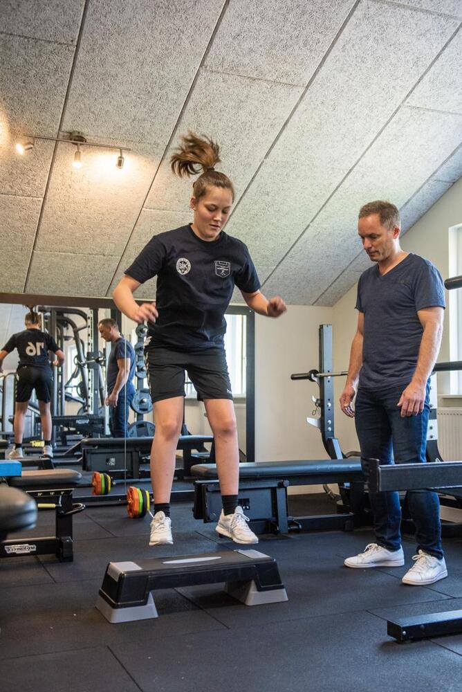 Efter endt behandling begiver vi os op ovenpå til det flotte træningslokale som ligger i Østbirk Hallen, og Jeppe Thorsager ligger ikke skjul på at det er luksus for en lille klinik i Østbirk at have adgang til faciliteterne: