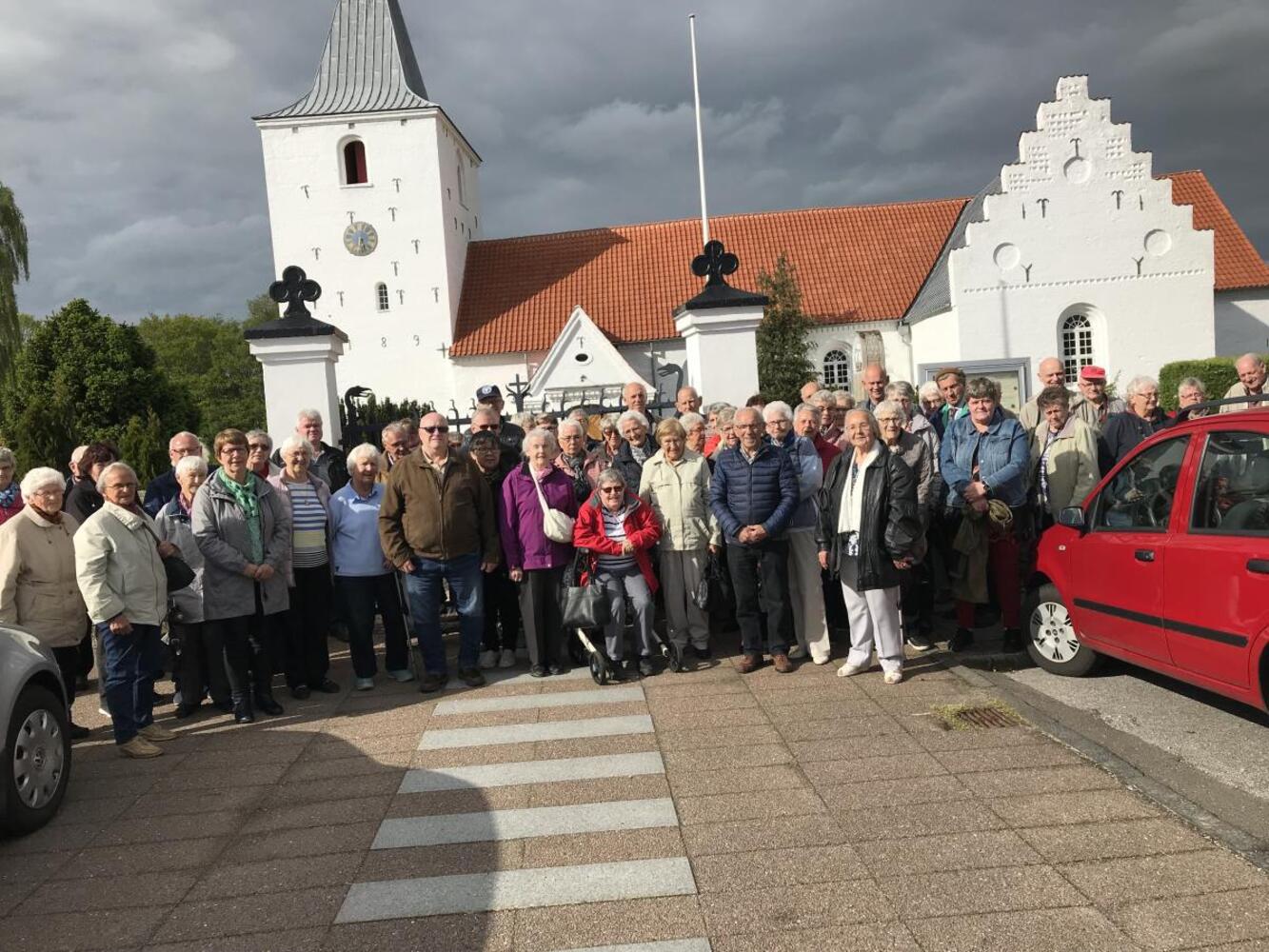 Turen var i onsdag, hvor vi kørte fra Torvet kl. 13.00. I øsende regnvejr gik turen til Ousted Kirke, hvor menighedsrådsmedlem Kirsten Friis tog imod i kirken og fortalte os om denne af Danmarks 3. højst beliggende kirker.