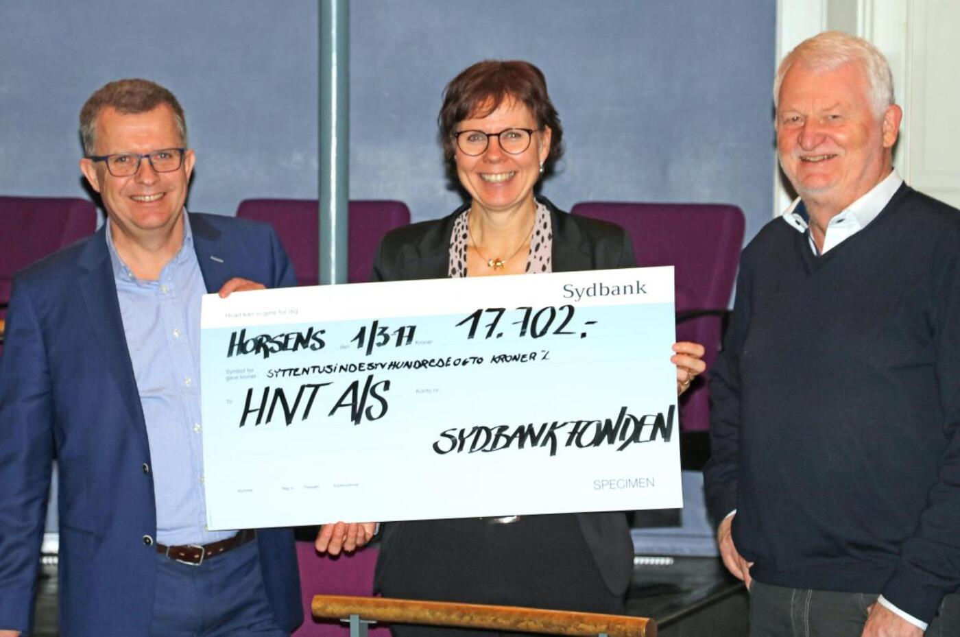 Fra højre: Flemming Hansen (Sydbank), Lone Wessel og Orla Kjeld Bothe (Horsens Ny Teater).