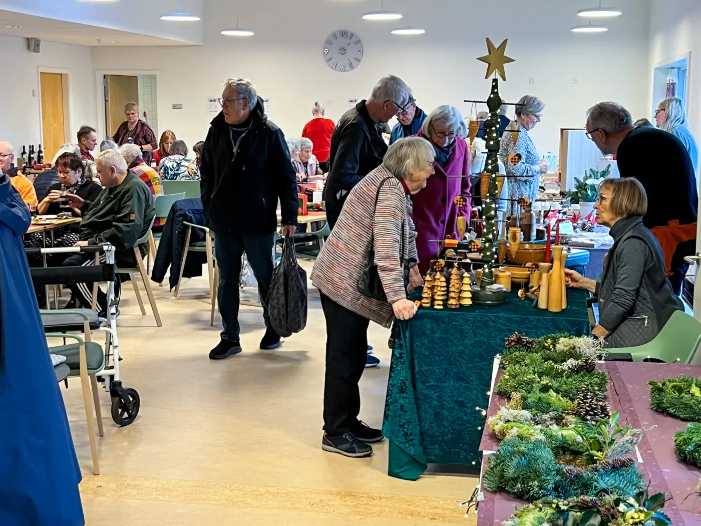 Vores julemarked er en gammel tradition, og det har gennem årene været med til at skaffe mange penge til centerrådets aktiviteter. Det er centerrådet, der står for salg af gløgg og æbleskiver, og det er også os, der har været i gang med at lave kranse og juledekorationer. Udover at det bidrager til det gode formål, har vi det faktisk også hyggeligt mens vi laver dem.