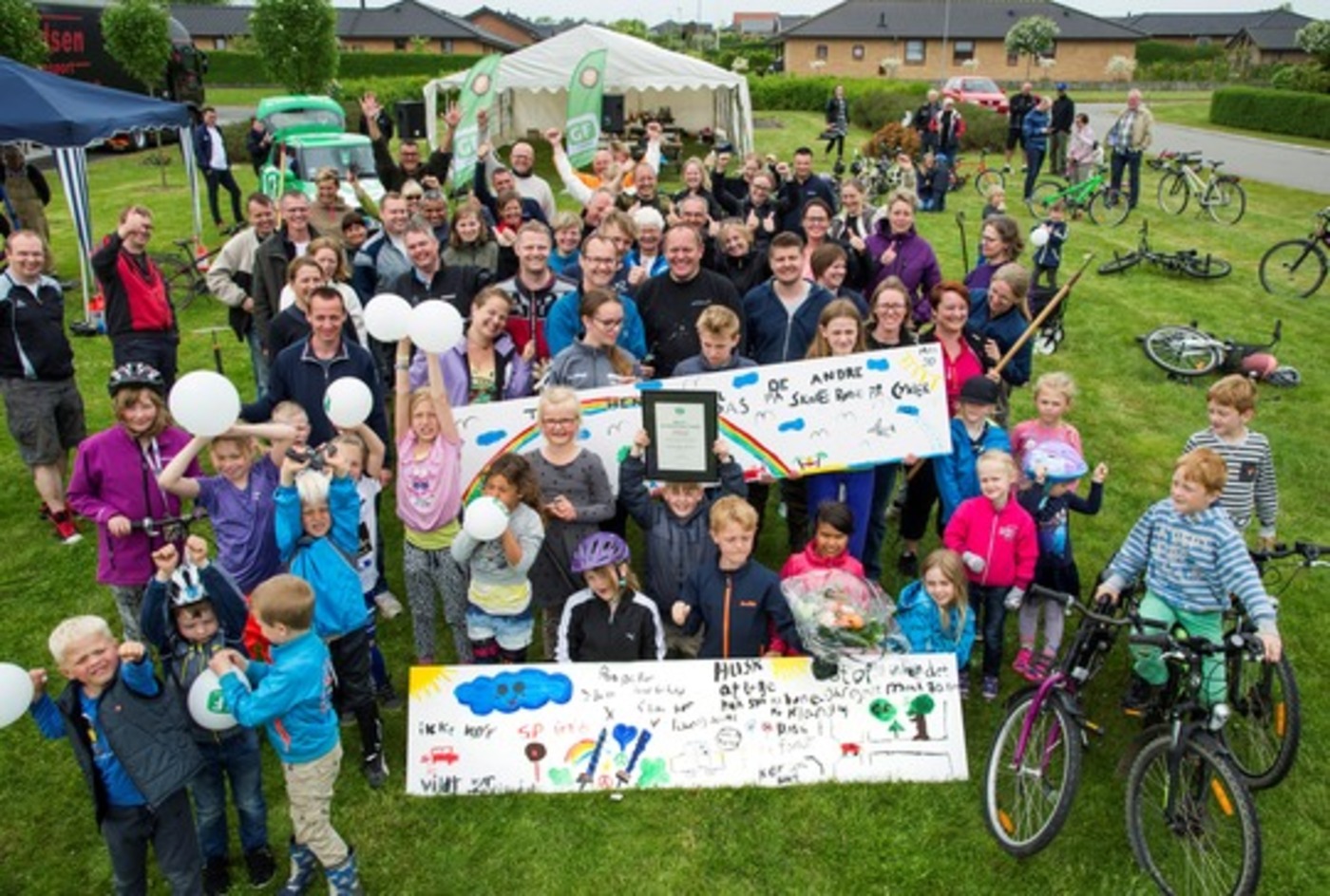 I foråret 2016 modtog børnene i grundejerforeningen Klanghøj i Låsby en trafikpris fra GF Fonden. De modtog prisen for deres aktive indsats for at gøre området mere trygt og sikkert at færdes i. Foto: Alex Tran.