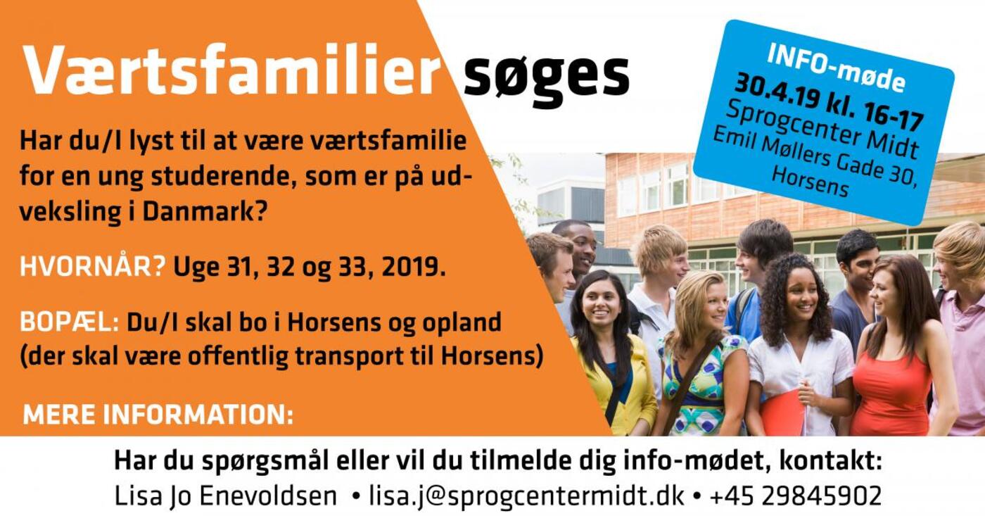 Sprogcenter Midt har allerede fået en del henvendelser fra interesserede om at blive værtsfamilie, men der er stadig plads til flere. Da undervisningen foregår i Horsens, skal der være offentlig transport til Horsens fra bopælen.