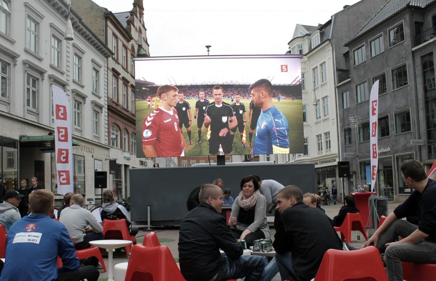 Danmarks første VM-kamp mod Peru vises live på storskærm på Søndergade i Horsens. Foto: DBU.