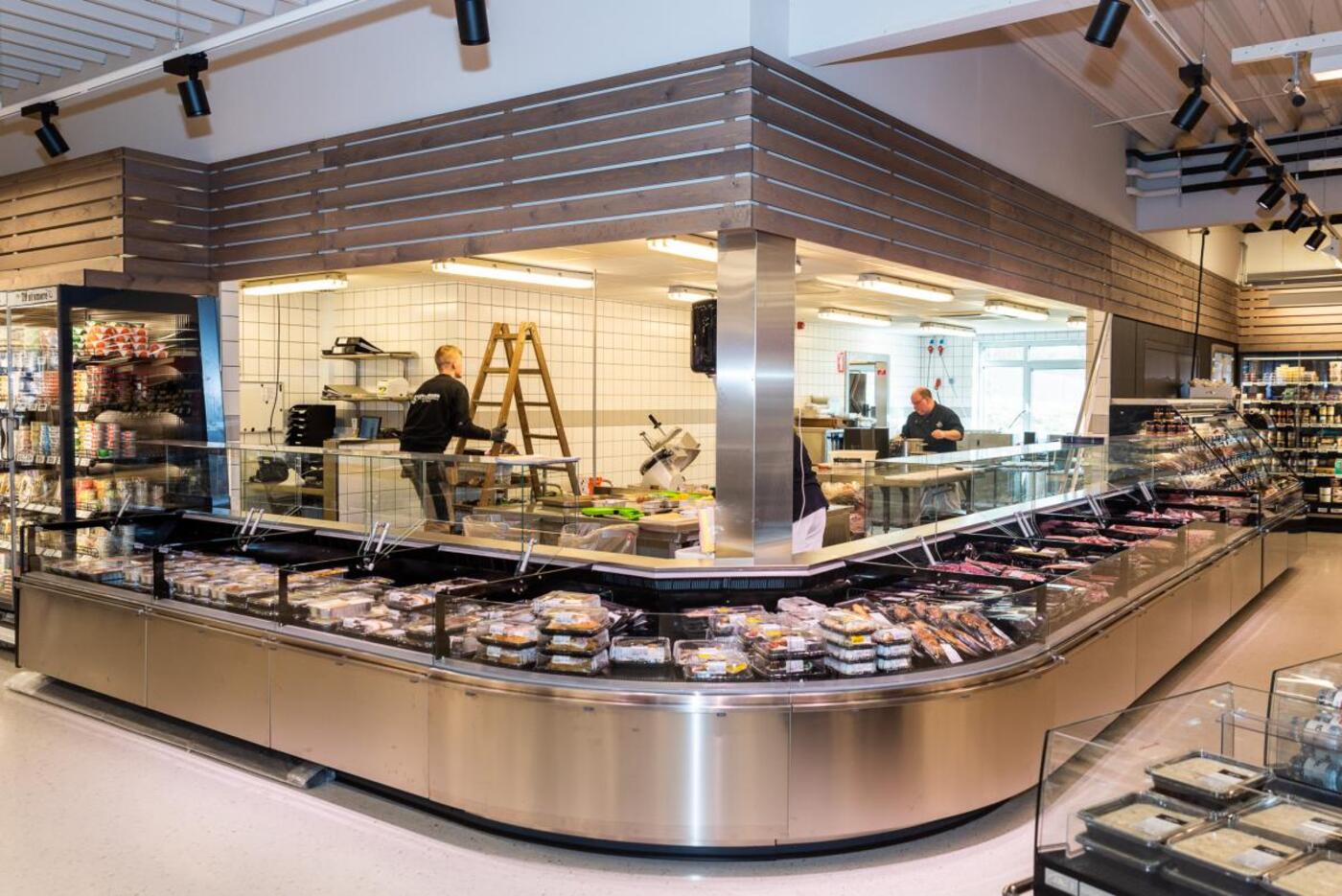 - Det var vores oprindelige plan at flytte slagterafdelingen ind fra deres midlertidige lokaler i skurvognene torsdag aften men det store rykind af kunder fik os til at udsætte flytningen. Ellers oplever vi ikke det store pres på forretningen, bortset fra kunderne handler ind fordelt på hele vores åbningstid.