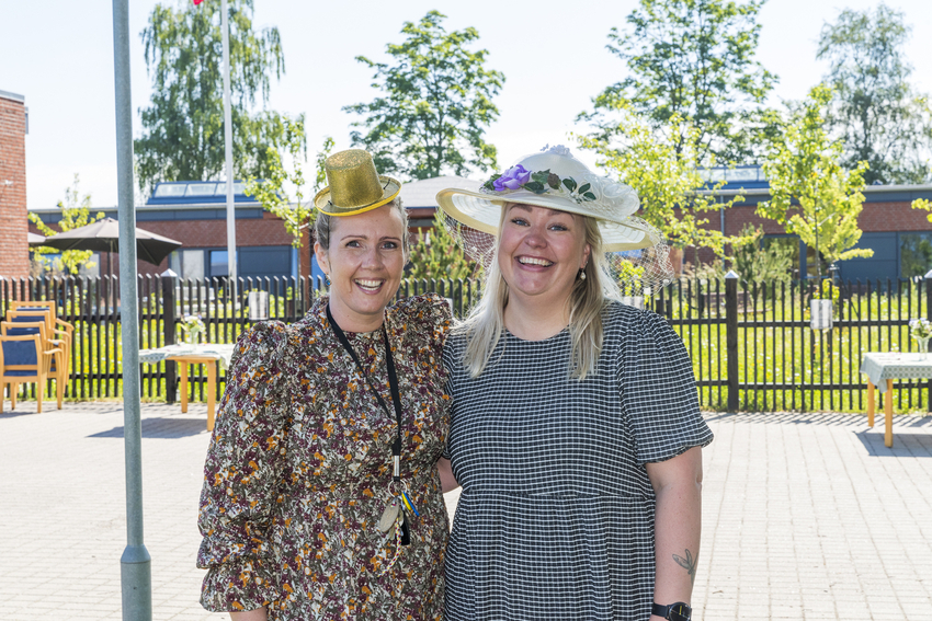 Personalet på Gedvedhus havde i dagens anledning fundet klæd-ud-kassen frem med alle de fine hatte. Mange valgte at tage en hat på og stemningen kunne nemt minde om en scene fra Pippi Langstrømpe eller Orla Frøsnapper hvor cirkus Bardini kommer til byen.