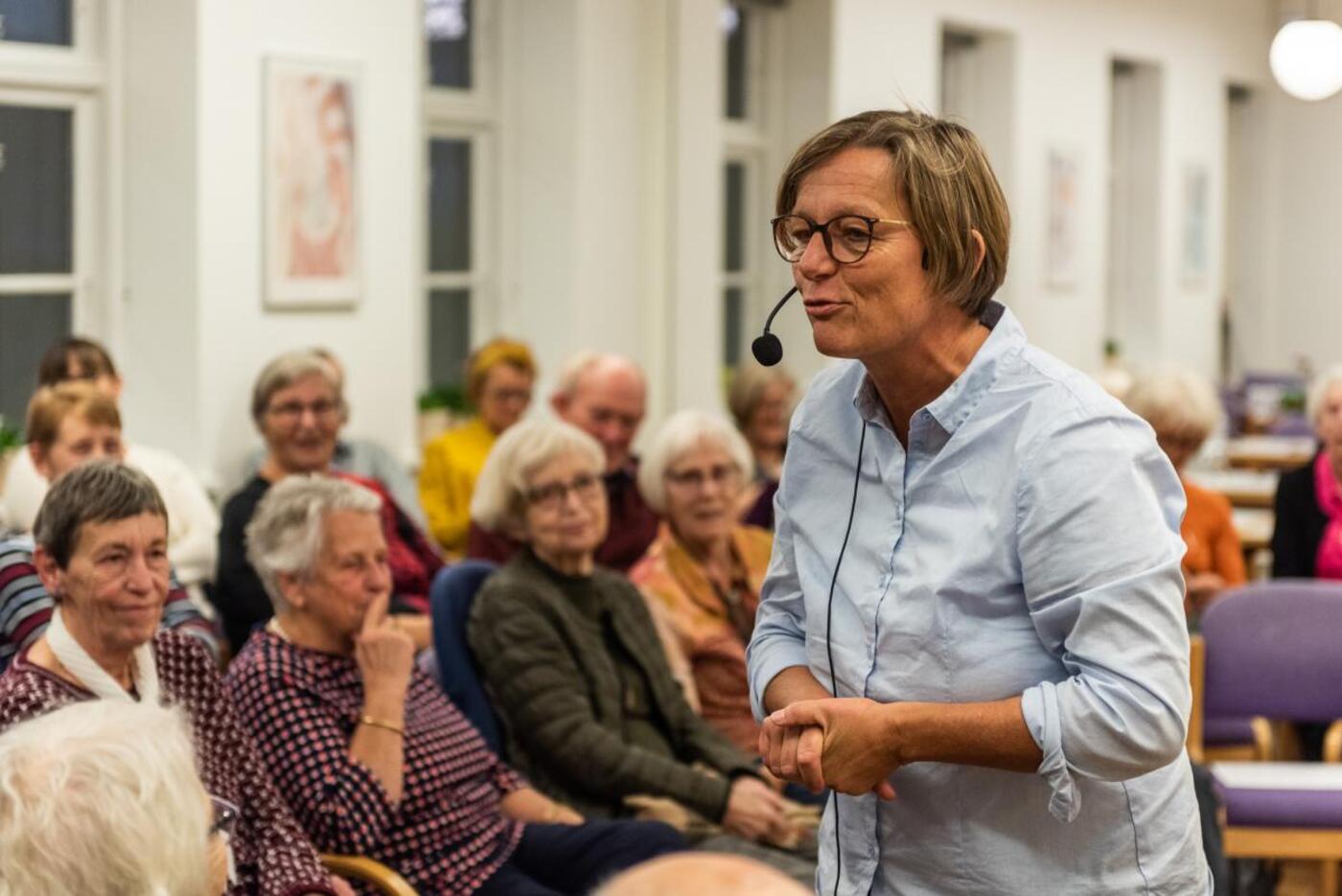 Tirsdag 29. oktober sidst på eftermiddagen var der foredrag med hospitalspræst Annette Vinter Hedensted, i Østbirk præstegård. Det store mødelokale var fyldt næsten helt op femten minutter før annonceret start.