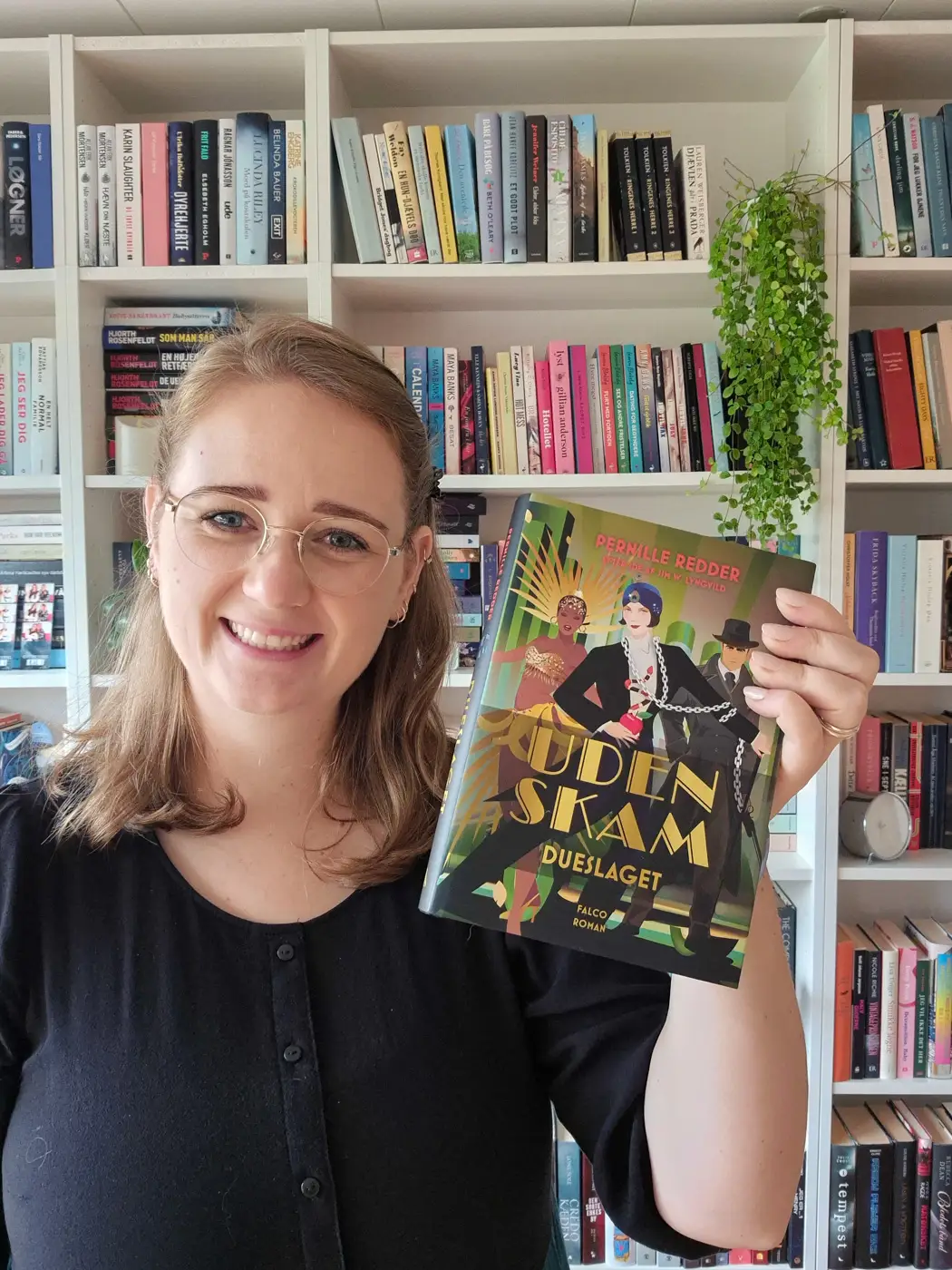 Pernille Redder har siden januar 2024 udgivet de 3 første bøger i Uden Skam serien. På billedet ses anmelder Emilie Kildall med bogen, som er udgivet af forlaget Falco.