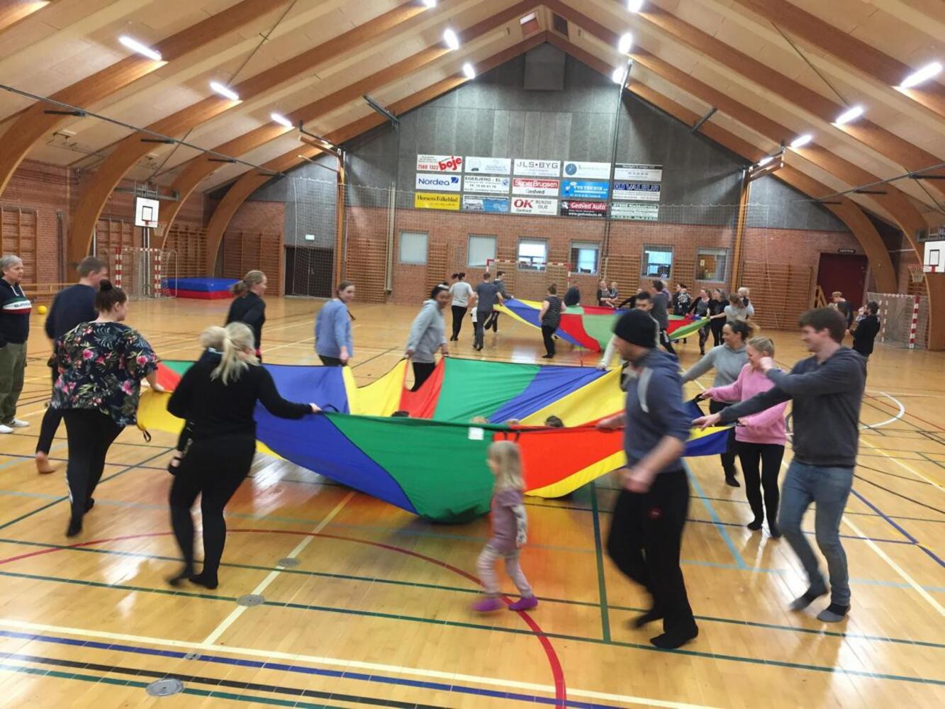 Søndag den 8. marts var begge hold samlet i Gedved Hallen til fællesafslutning. En god afslutning på sæsonen, med sanglege, rasle æg, leg med faldskærm og en stor motorikbane. Omkring 30 gymnaster med forældre var med i Hallen.