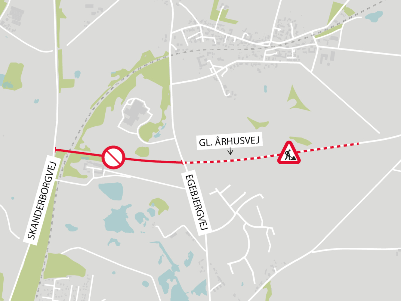 Som bilist skal man være opmærksom på, at vejen mellem Skanderborgvej og Egebjergvej vil være spærret for al trafik fra søndag den 8. november kl. 08 til mandag den 9. november kl. 06.