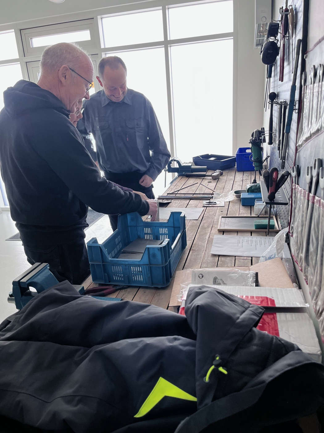 Frivillige hjælper til. Nogle er uddannede håndværkere. Andre har bare mange års erfaring i hænderne. De hjælper hinanden, giver gode råd og finder løsninger sammen.