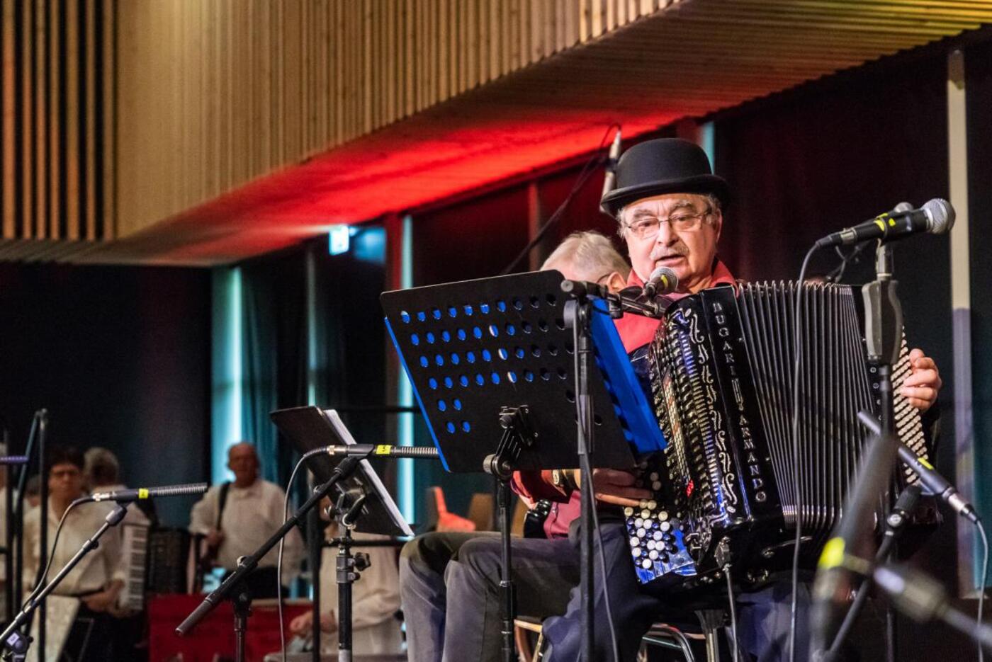 En halvkedelig grå vinter lørdag var helt perfekt for harmonikaentusiasterne som var taget til årets harmonikatræf i et fyldt INSERO – alene p-pladsen vidnede om at der var mange indendørs da næsten alle pladser var taget i brug.