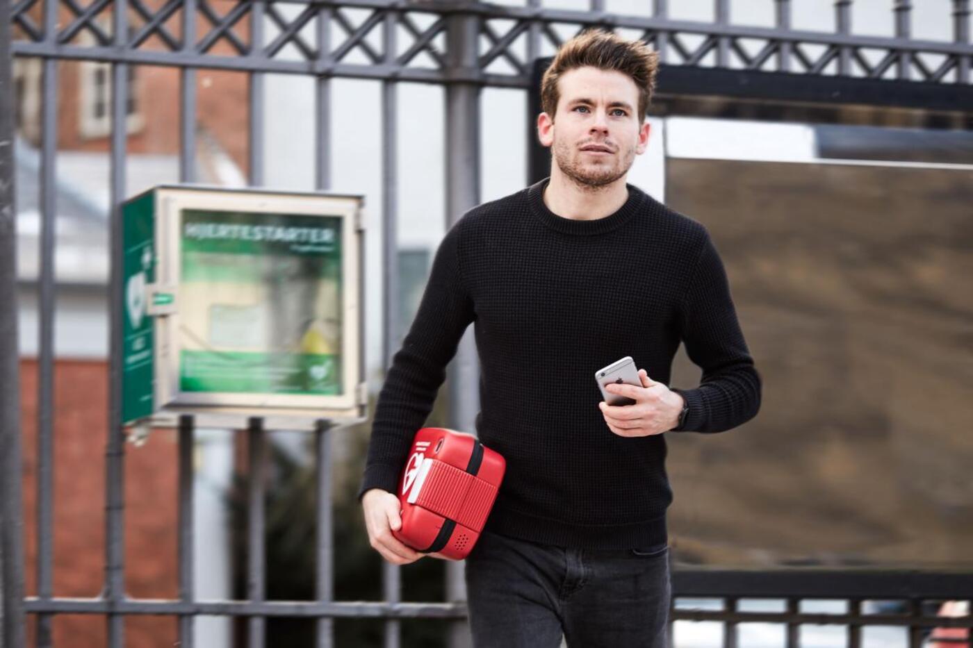 • Hjerteløberne alarmeres via appen og guides i at yde hjertelungeredning og hente en hjertestarter for at kunne begynde genoplivningen, inden ambulancen når frem.