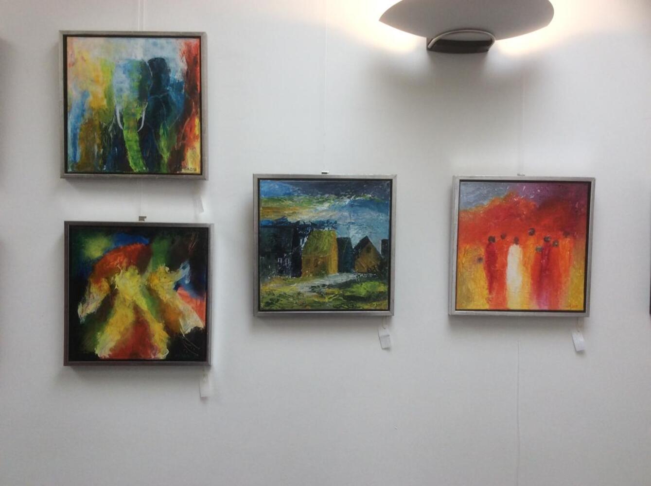 Ved Høstgudstjenesten er vi så heldige, at kirken samtidig er ”pyntet op med” malerier af Gerda Arildsen.