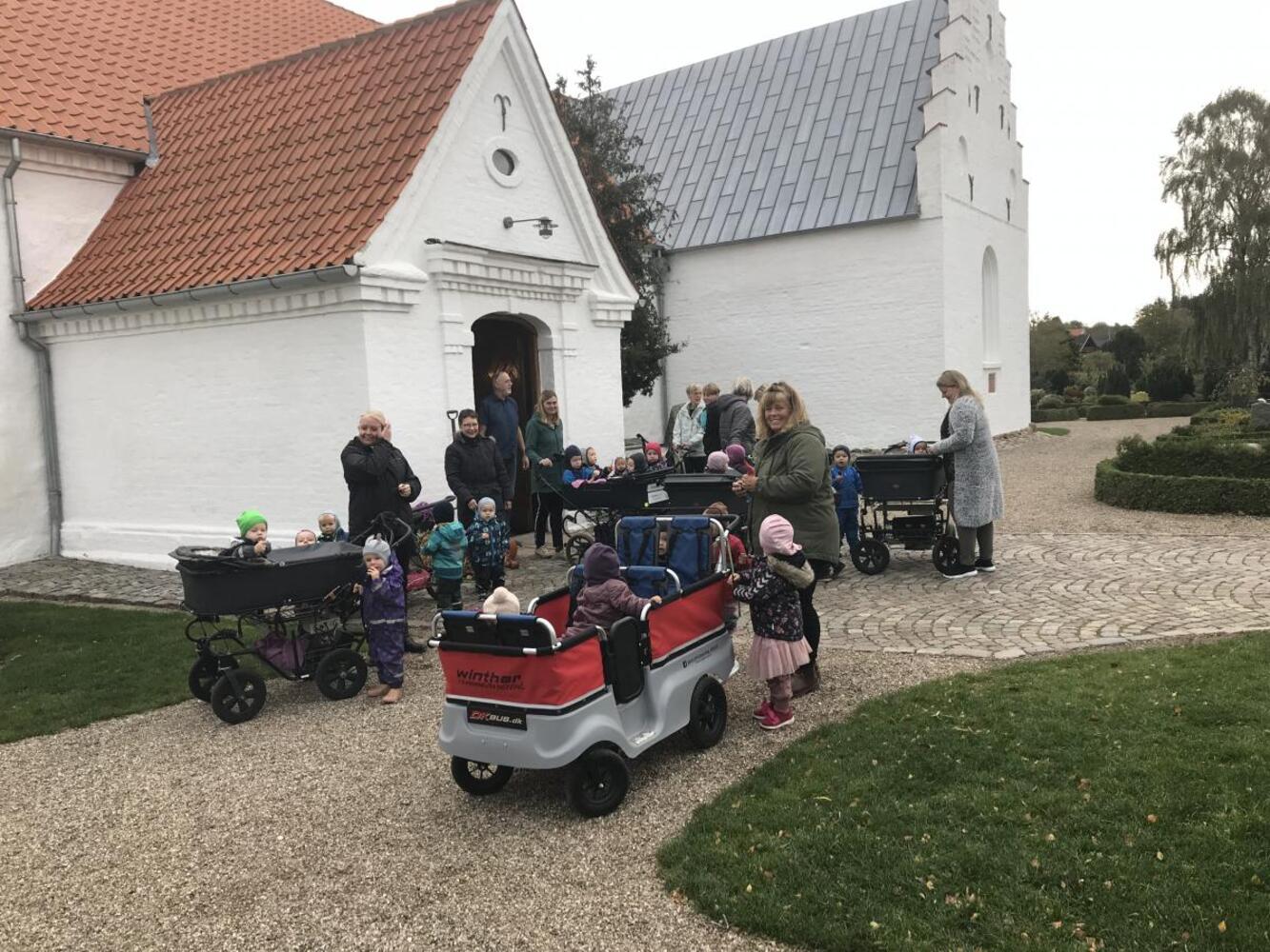 Dagplejebørn i høstpyntet Østbirk kirke