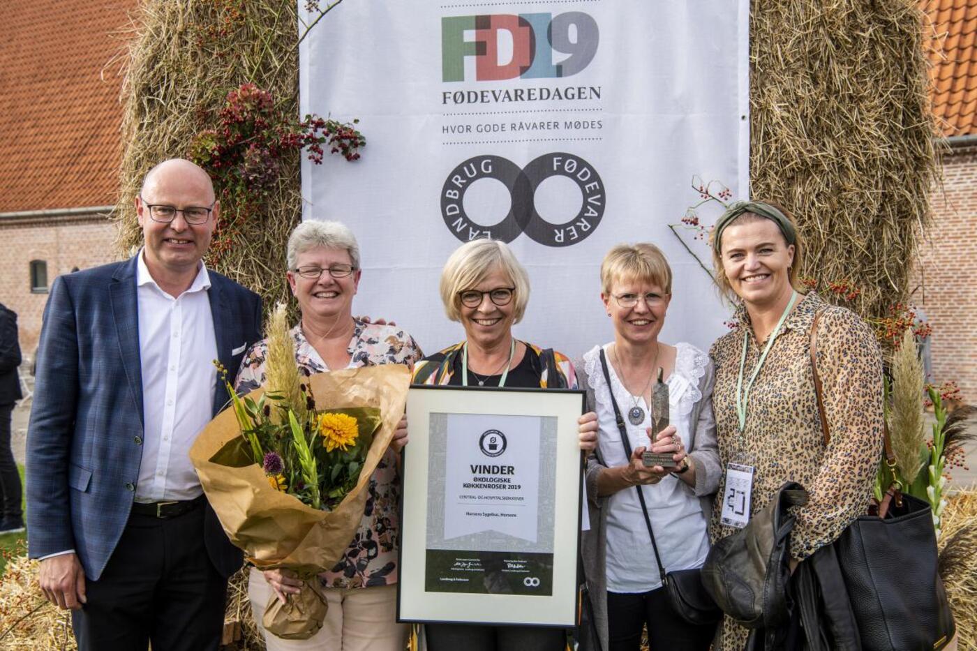 Det var glade og stolte vindere, der modtog deres trofæ som vindere af prisen ’De Økologiske Køkkenroser’ 2019.
