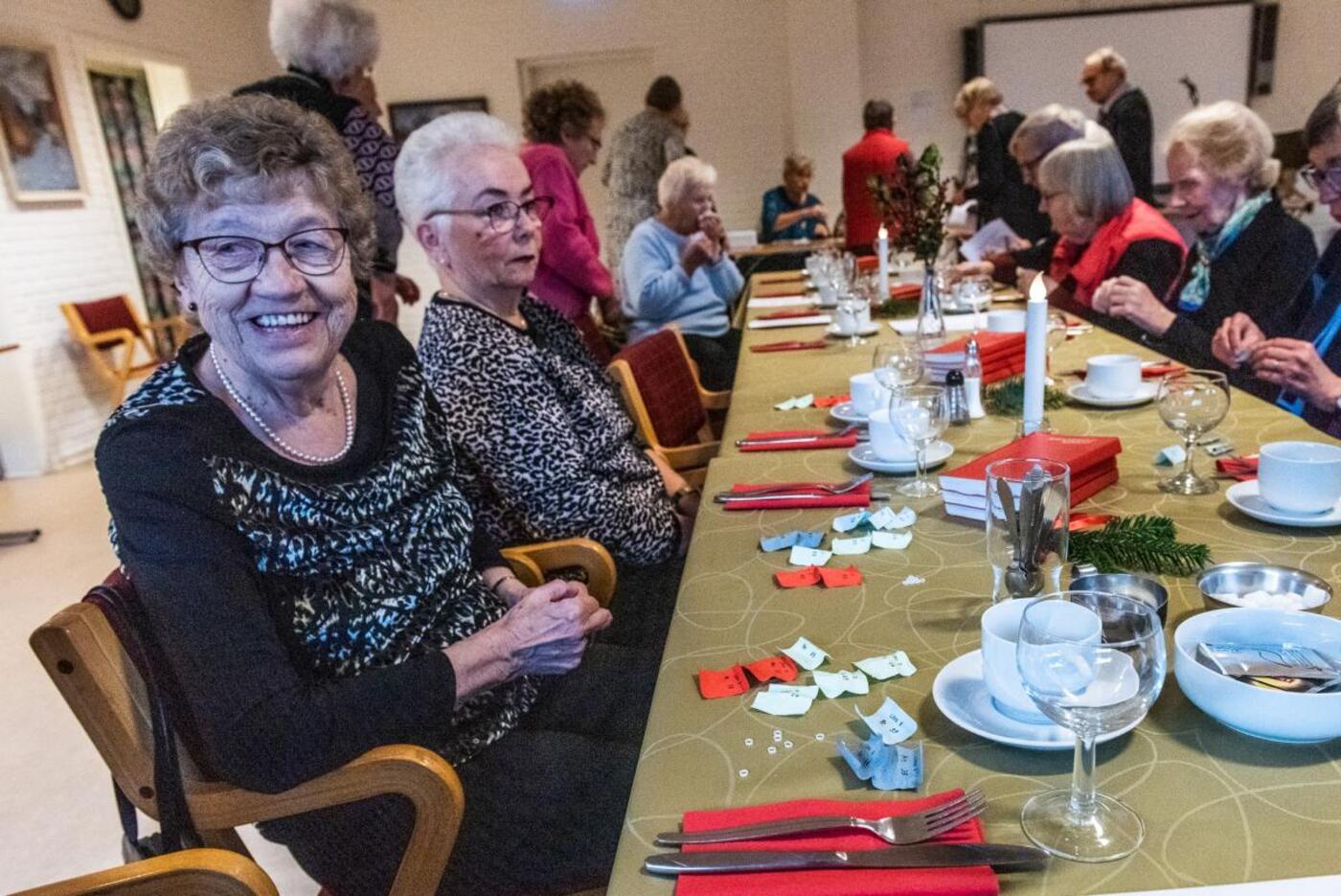 Da et arrangement som juleafslutningen i foreningen ikke kræver tilmelding, møder man bare op og deltager i løjerne. Det betød at alle bordene blev helt fyldt op og man måtte til at finde ekstra bord og stole frem så alle kunne få en plads. På trods af små praktiske opgaver kom fest godt i gang og alle have en hyggelig eftermiddag på Birkebo.
