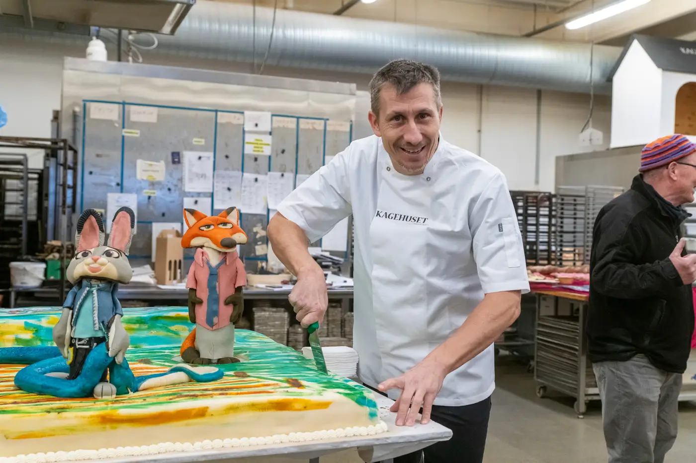 Da porten gled op, strømmede varmen ud. Gæsterne fulgte efter. Det blev næsten et lille ryk, en slags muntert stormløb mod den enorme kage, der stod som et farverigt lyspunkt midt i rummet. 300 kilo. Disney-tema fra filmen Zootropolis 2. En af de slags kager, der får voksne til at smile lige så bredt som børn.