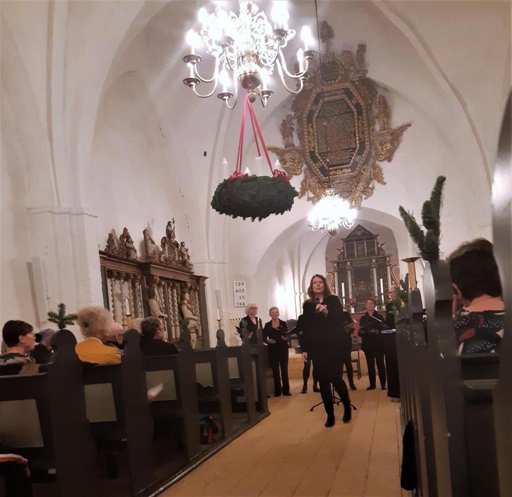 Forskelligartede og til tider temmelig komplicerede korsatser, sange og salmer blev leveret under ledelse af Hanne Rasmussen, Kenny Jensen og Astrid Lindvig. De dygtige korledere sørgede ikke bare for at korsangerne præsterede på fornem vis, så det rislede ned ad ryggen, imens smilende bredte sig i kirkerummet, hyggelige kommentarer fulgte nemlig også sangene på vej, og det underbyggede bare den gode stemning.