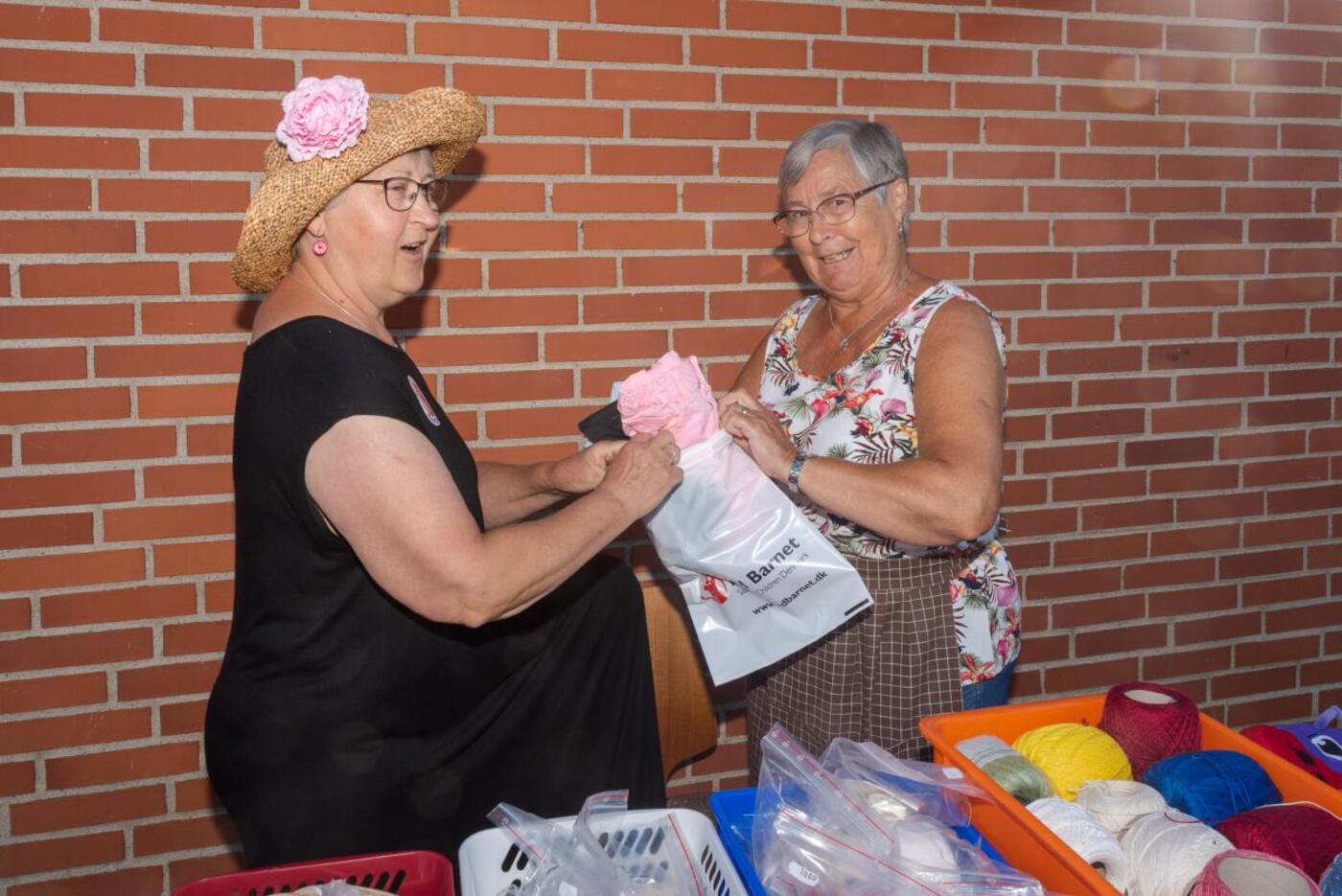 På en langt borg lå der store flotte stofrester i gode længder, som blev solgt til kun 5 kr. pr. bundt – det var et tilbud som mange benyttede sig af. På et andet bord var der rester af sytilbehør som knapper, tråd, strikke- og hæklepinde og masser garner. Der var næsten ubrugt legetøj, spil og børnetøj til salg og der var en lind strøm af kunder som alle gjorde gode køb ved bordene og pengene går som bekendt til at godt formål.